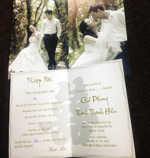 | Tiệc cưới của Thanh Thanh Hiền và Chế Phong đã được gửi tới bạn bè, người thân. |