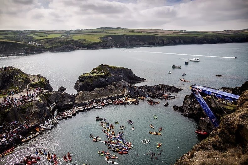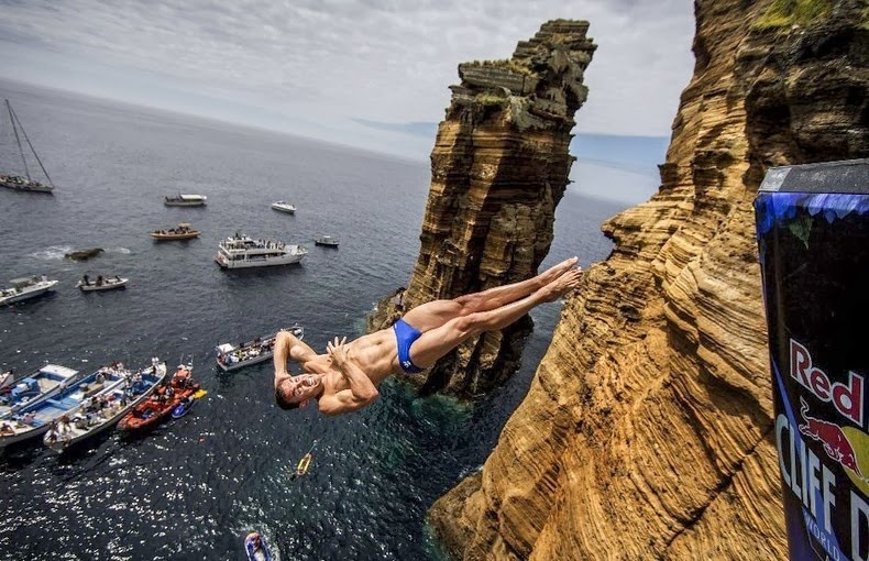 | Người tham gia vào sự kiện Red Bull Cliff Diving ở tiểu đảo Vila Franca do Campo trong quần đảo Azores của Bồ Đào Nha vào ngày 8/9/2012. |
