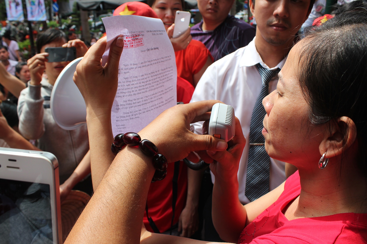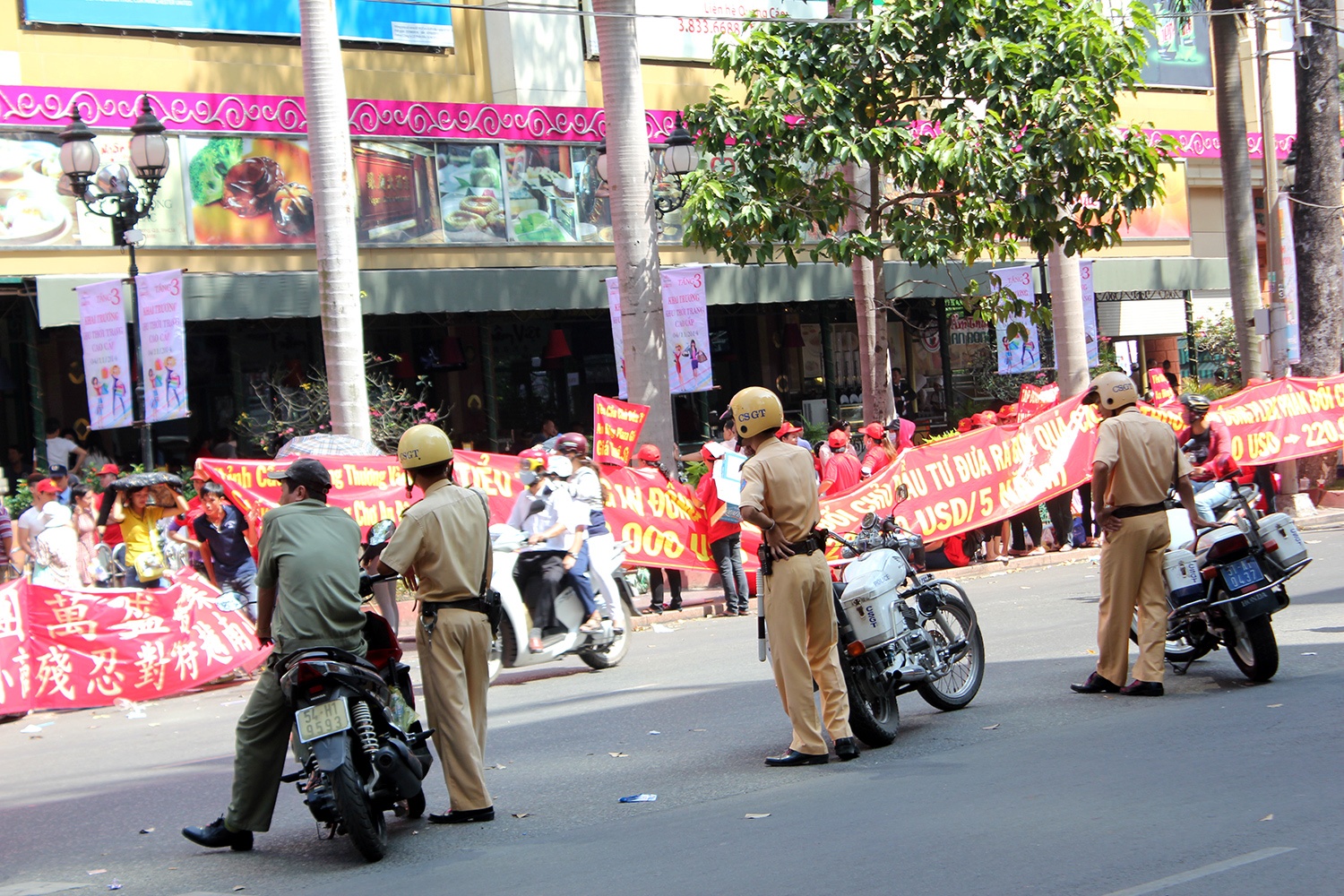 | Từ 6h sáng 20/11, hàng trăm tiểu thương mang biểu ngữ, băng rôn tập trung trước tòa nhà trung tâm thương mại An Đông Plaza để phản đối chủ đầu tư trì hoãn việc thỏa thuận giá thuê sạp, khi ngày hết hạn hợp đồng sắp đến hạn (tháng 2/2015). |
