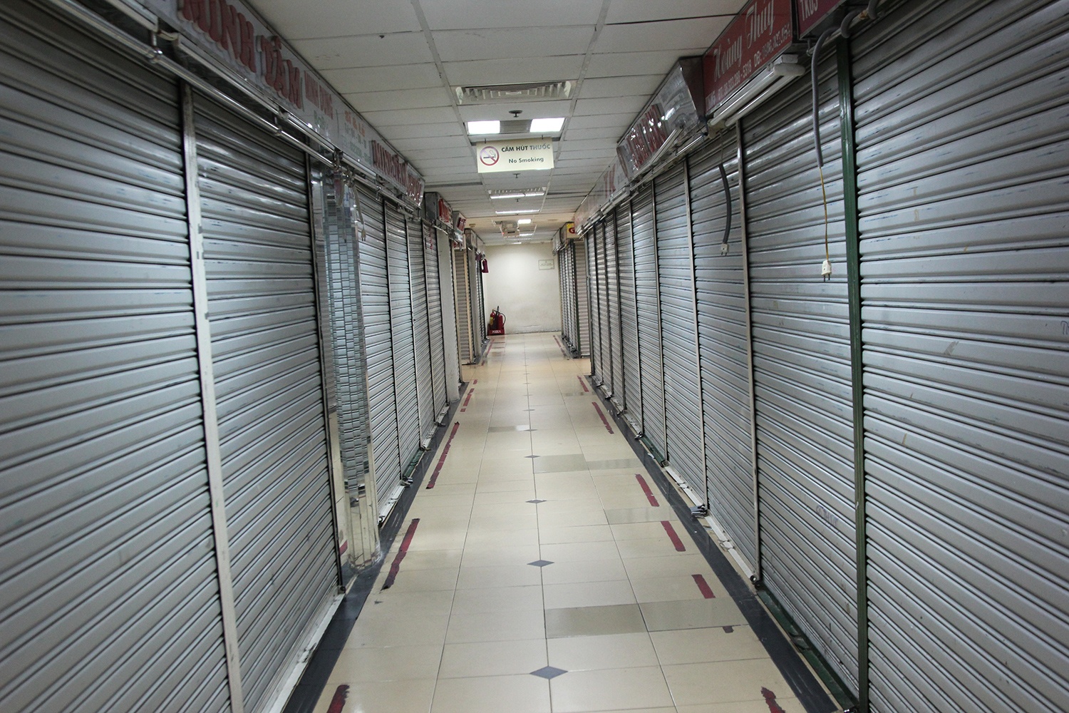| Tất cả các sạp hàng đều đóng cửa khiến cả trung tâm thương mại An Đông Plaza vắng tanh. |