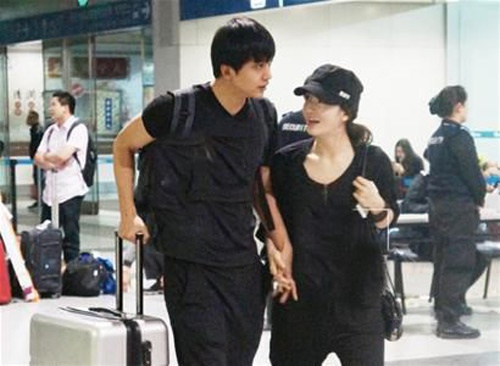 | Lý Giai Hàng và Lý Thạnh bị bắt gặp tay trong tay tại phi trường. |