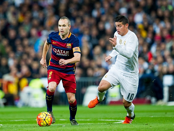 | Iniesta làm chủ khu trung tuyến ở siêu kinh điển. Ảnh: Getty Images. |