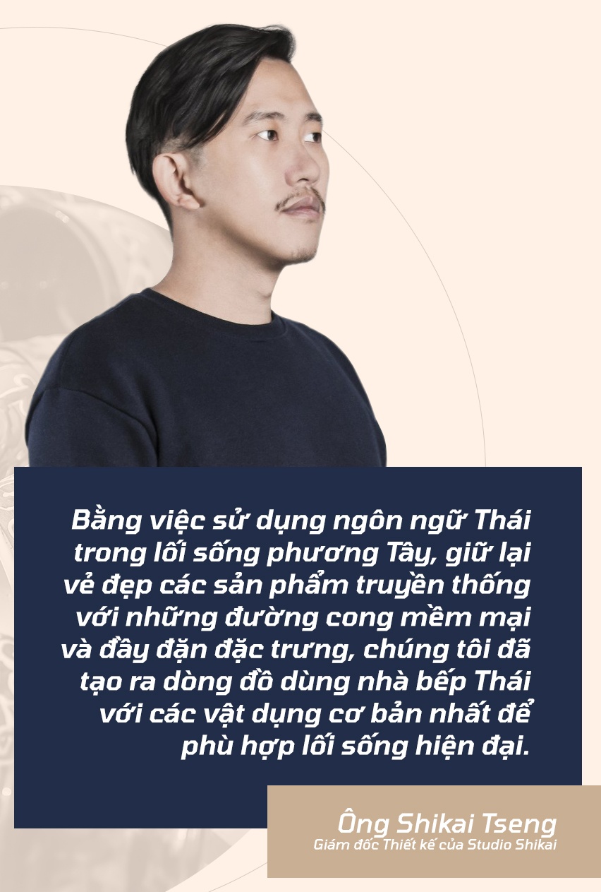 “Bằng việc sử dụng ngôn ngữ Thái trong lối sống phương Tây, giữ lại vẻ đẹp các sản phẩm truyền thống với những đường cong mềm mại và đầy đặn đặc trưng, chúng tôi đã tạo ra dòng đồ dùng nhà bếp Thái với các vật dụng cơ bản để phù hợp lối sống hiện đại”, ông Shikai Tseng chia sẻ.