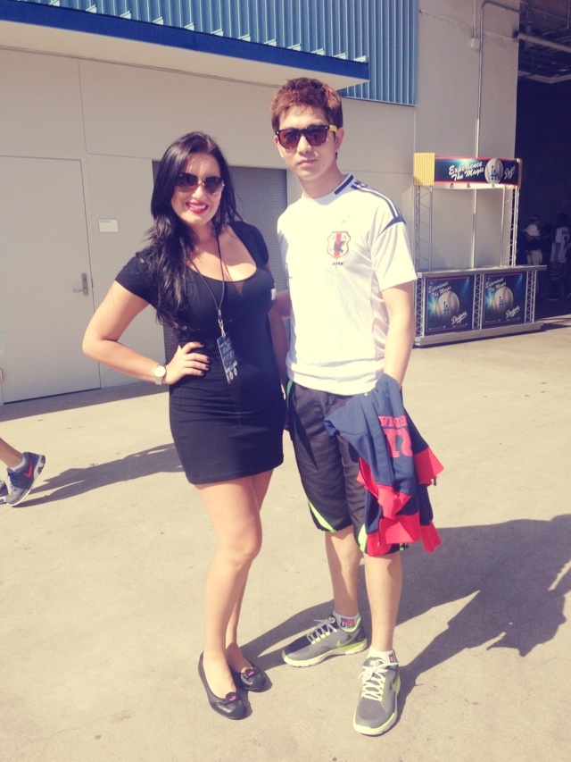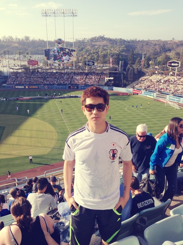 Bố bé Sushi tranh thủ đi xem trận đối đầu của hai CLB bóng đá nổi tiếng là Real Madrid và Everton trong chuyến lưu diễn ở Mỹ.