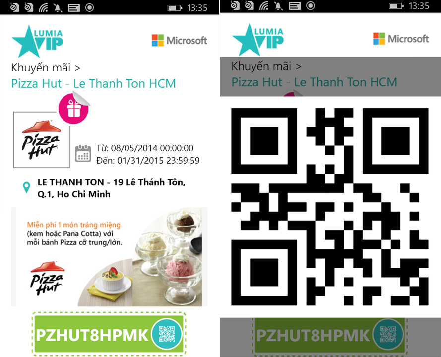 Với các gói khuyến mãi hấp dẫn đến từ hơn 500 nhãn hàng lớn trên toàn quốc, Lumia VIP là ứng dụng không thể thiếu cho các tín đồ ăn uống và mua sắm sử dụng Windows Phone.