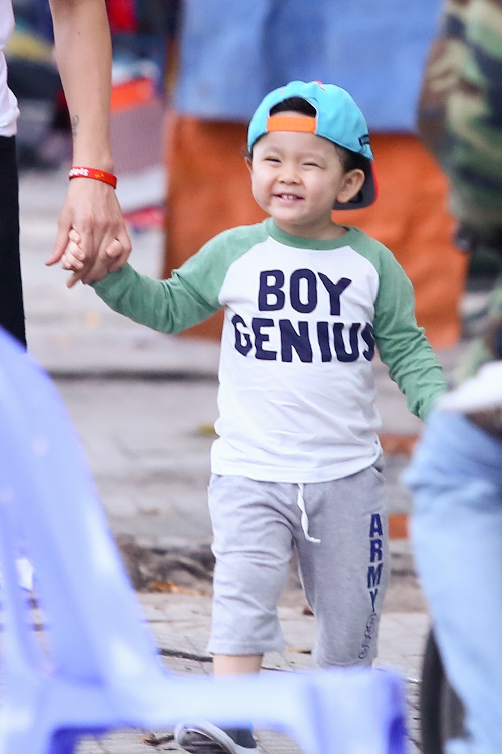 | Bé sở hữu cả nét đẹp của bố Tim và mẹ Trương Quỳnh Anh. Cậu nhóc tỏ ra khá lém lỉnh và nhanh nhẹn. |