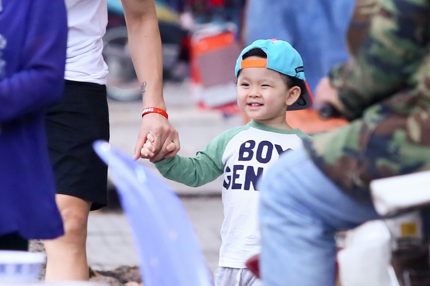 | Sau khi mua bánh xong, Sushi lại lẫm chẫm theo ba đi bộ về nhà. Cậu nhóc tỏ ra khá tự lập khi bước đi trên đường mà không làm nũng đòi Tim bế ẵm. |
