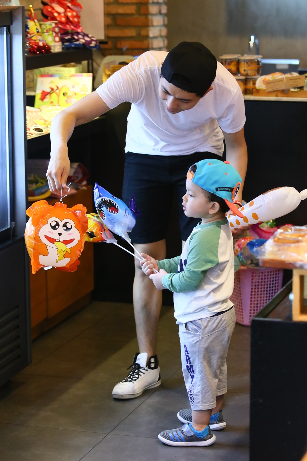 | Hôm 10/6, Tim đã xuất hiện trên phố cùng con trai của mình. Cả hai bố con diện trang phục khá thoải mái và năng động. Hiện tại, Trương Quỳnh Anh đang bận rộn với lịch đóng phim khá dày đặc nên Tim là người chịu trách nhiệm trông con. |