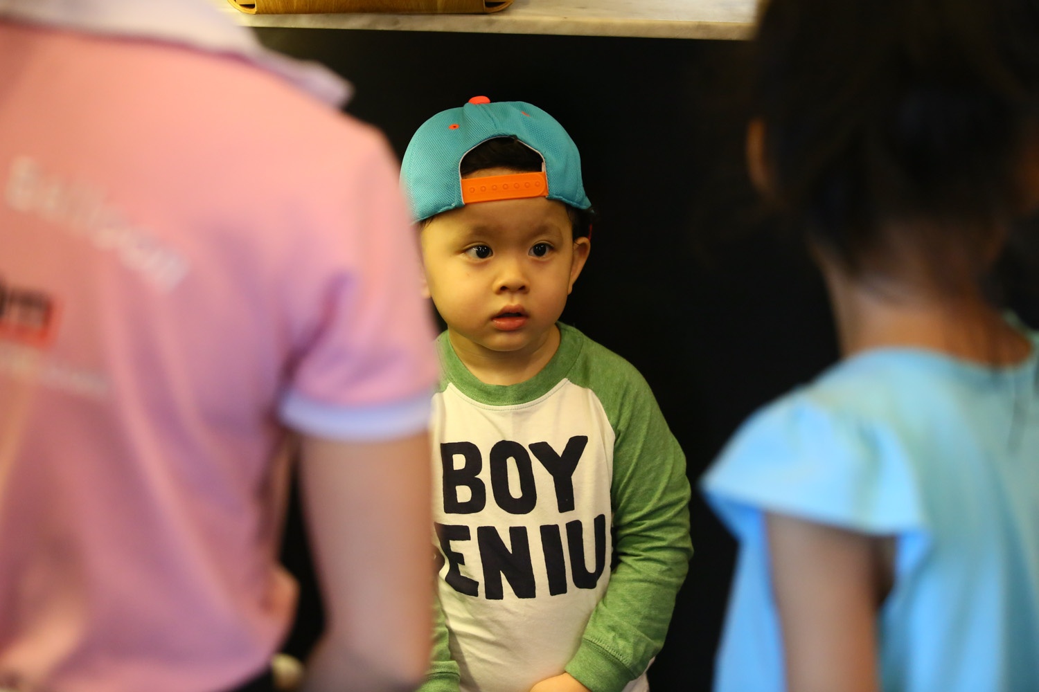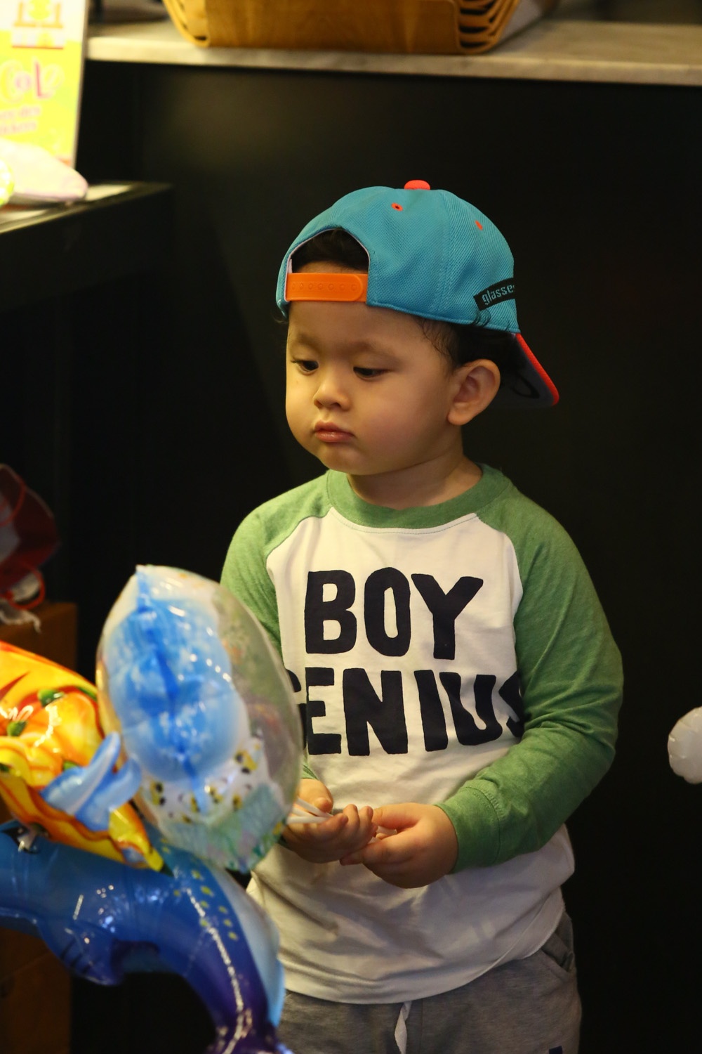 | Sushi tên thật là Cát An. Cậu nhóc tỏ ra khá hiếu động khi vào cửa hàng bánh và được ba yêu cầu lựa chọn một quả bóng yêu thích. |