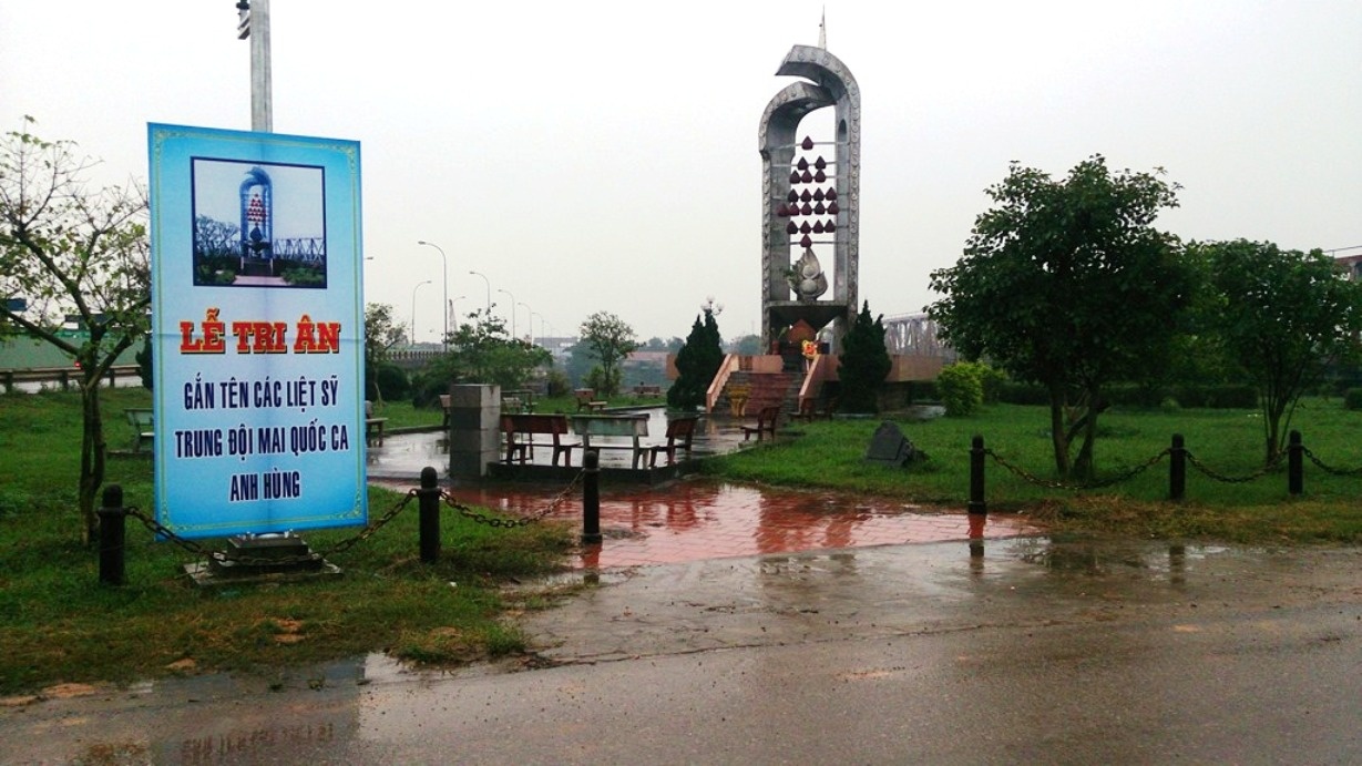 | Tượng đài 20 giọt máu tượng trưng cho 20 chiến sĩ trung đội Mai Quốc Ca anh hùng đặt ở phía bắc cầu Thạch Hãn. |
