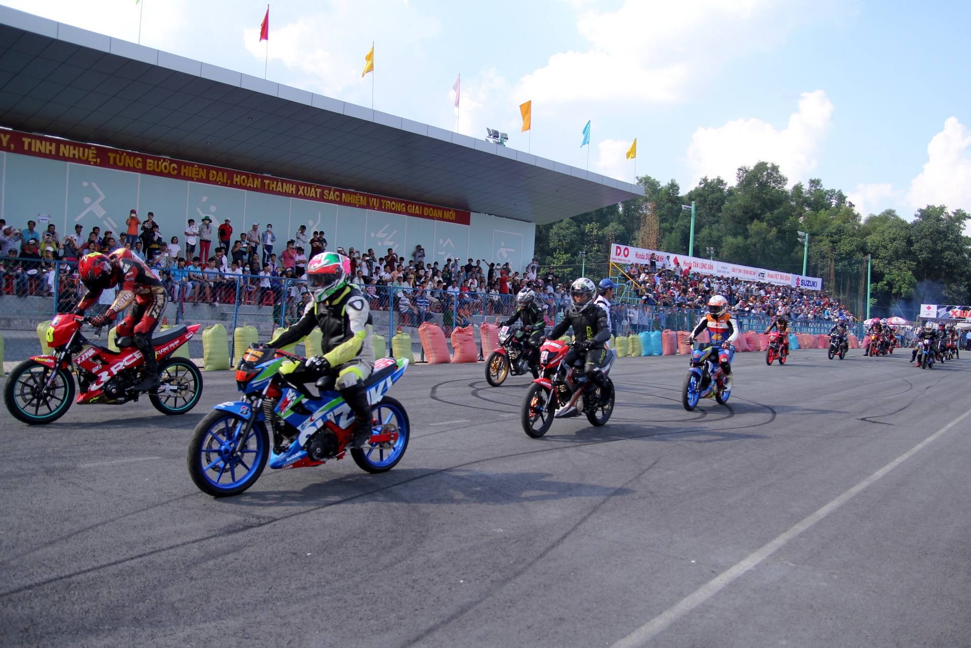 | Bên cạnh giải Raider chuyên nghiệp thì giải đua Suzuki Sport cũng thu hút nhiều người theo dõi bởi âm thanh quen thuộc của dòng xe hai thì. |