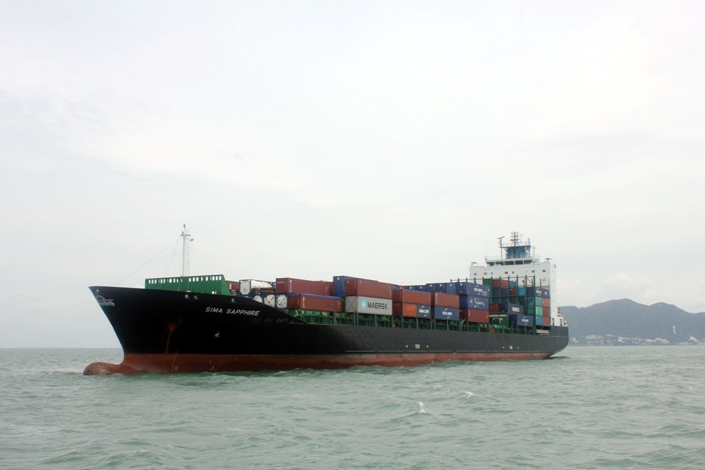| Tàu Sima Sapphire đâm chìm tàu cá làm 8 ngư dân thiệt mạng đang neo đậu ở bờ biển Vũng Tàu để phục vụ công tác điều tra. |