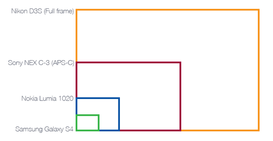 | Kích cỡ cảm biến trên một số sản phẩm điện thoại và máy ảnh hiện nay. Ảnh: TechRadar. |