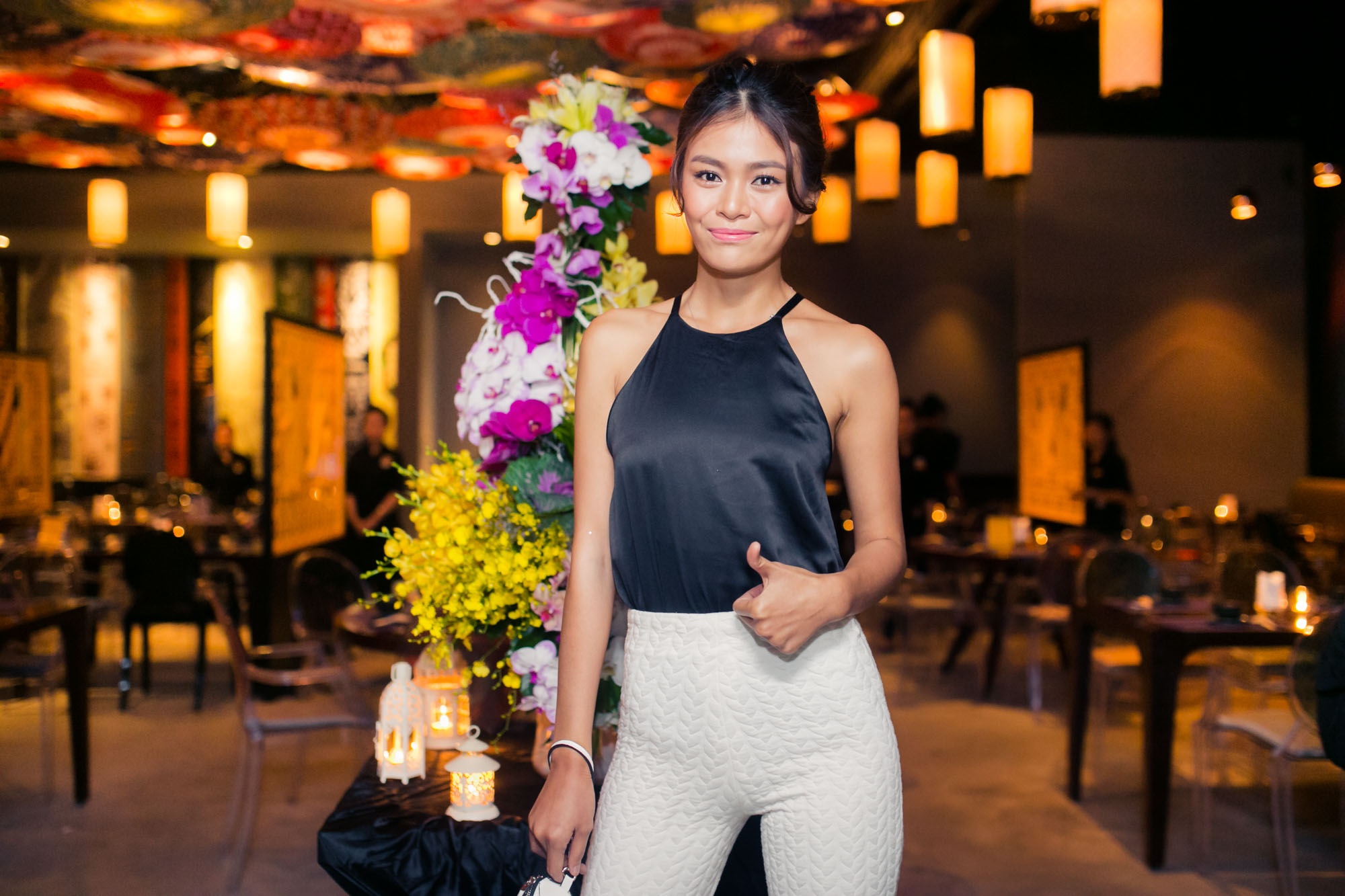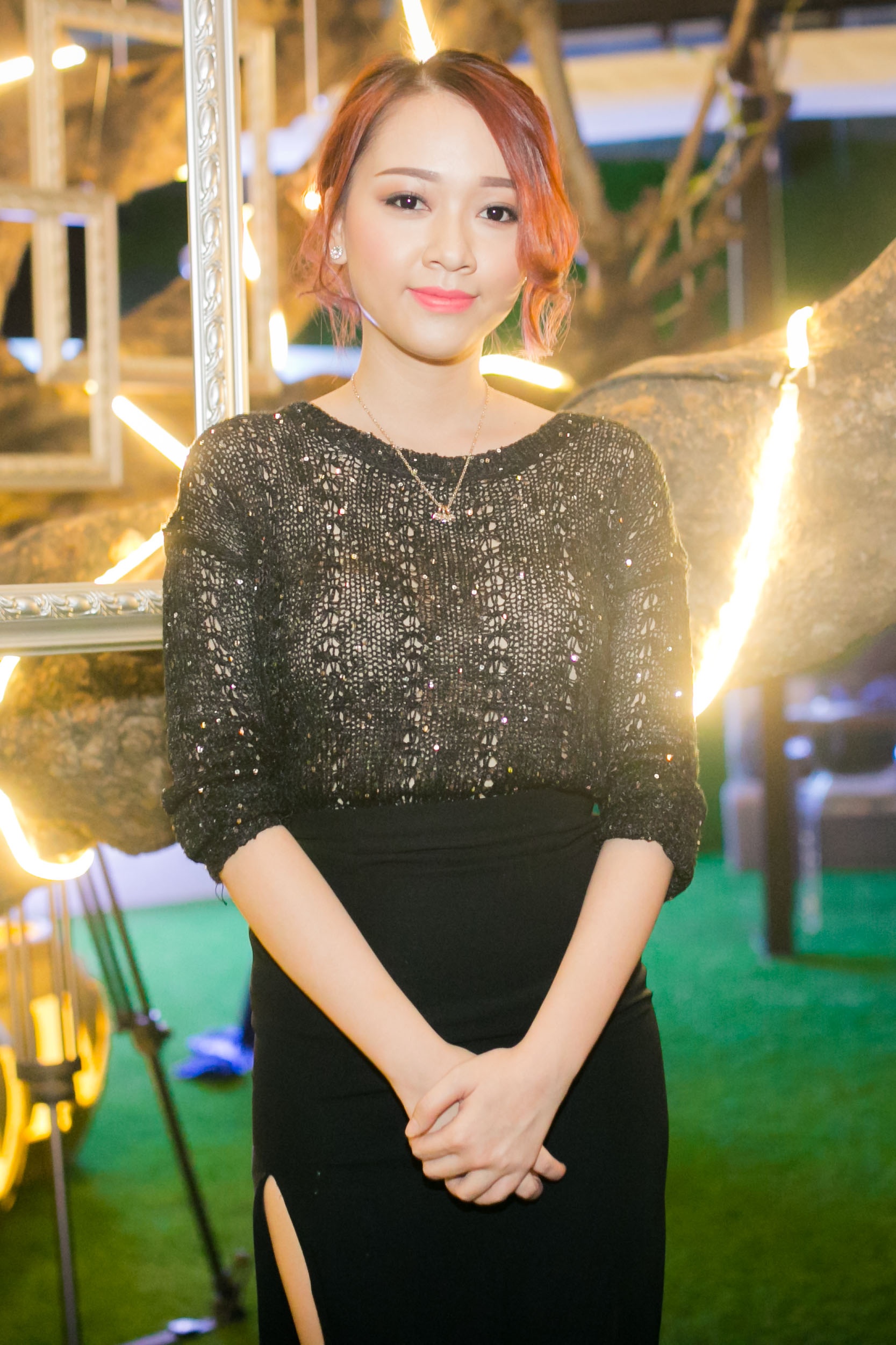 | Andrea bất ngờ kín đáo trong trang phục đầy nữ tính. |
