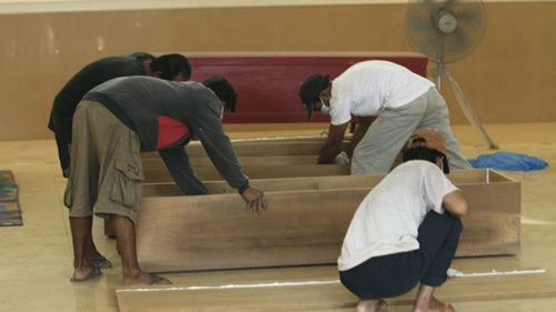 | Xác nạn nhân được đặt tại đền thờ Chond De để chờ xác định (Ảnh: AP). |
