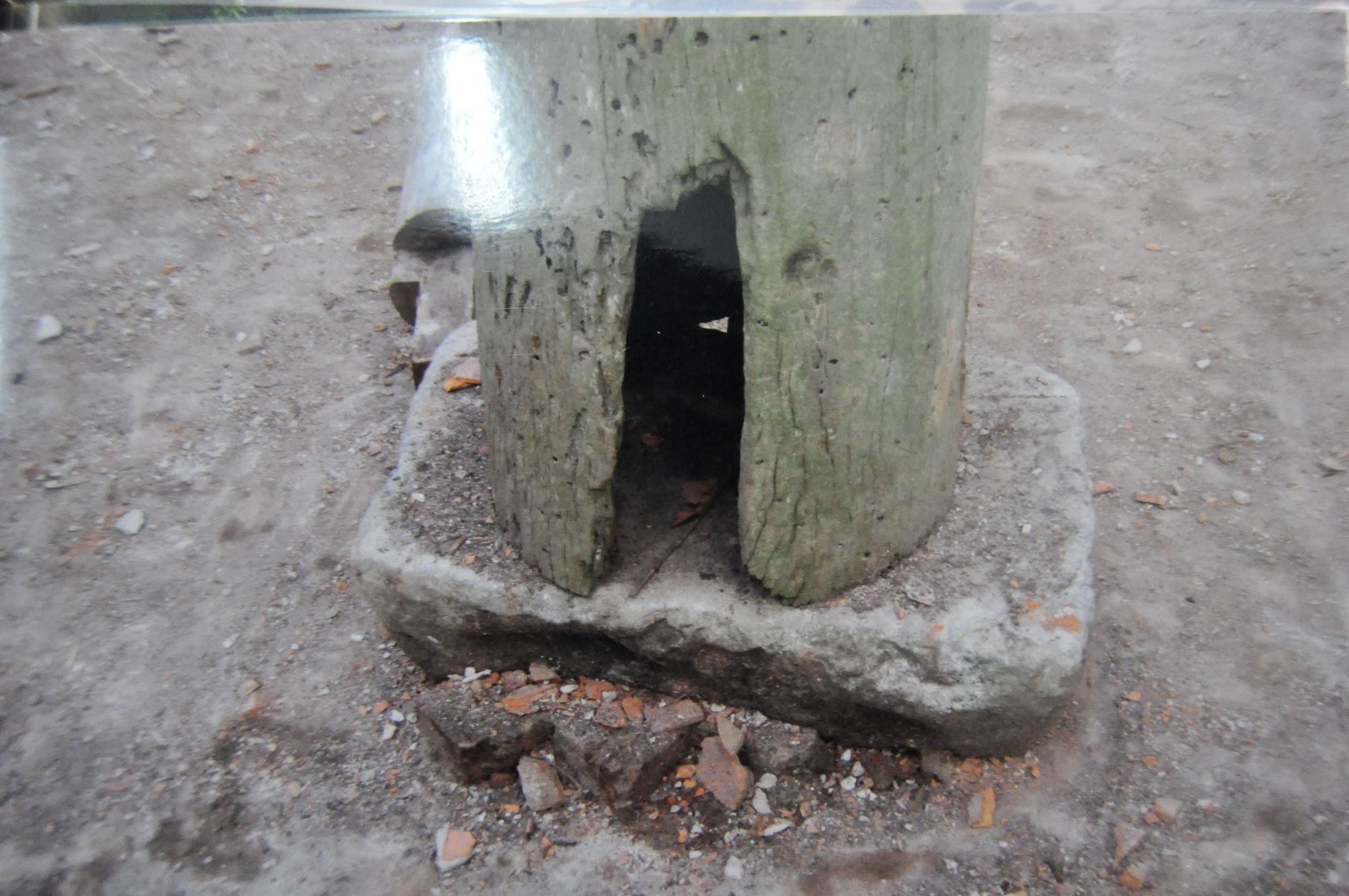 | Một vết gãy của thân rồng đất cho thấy chất liệu đất nung rất cứng. |