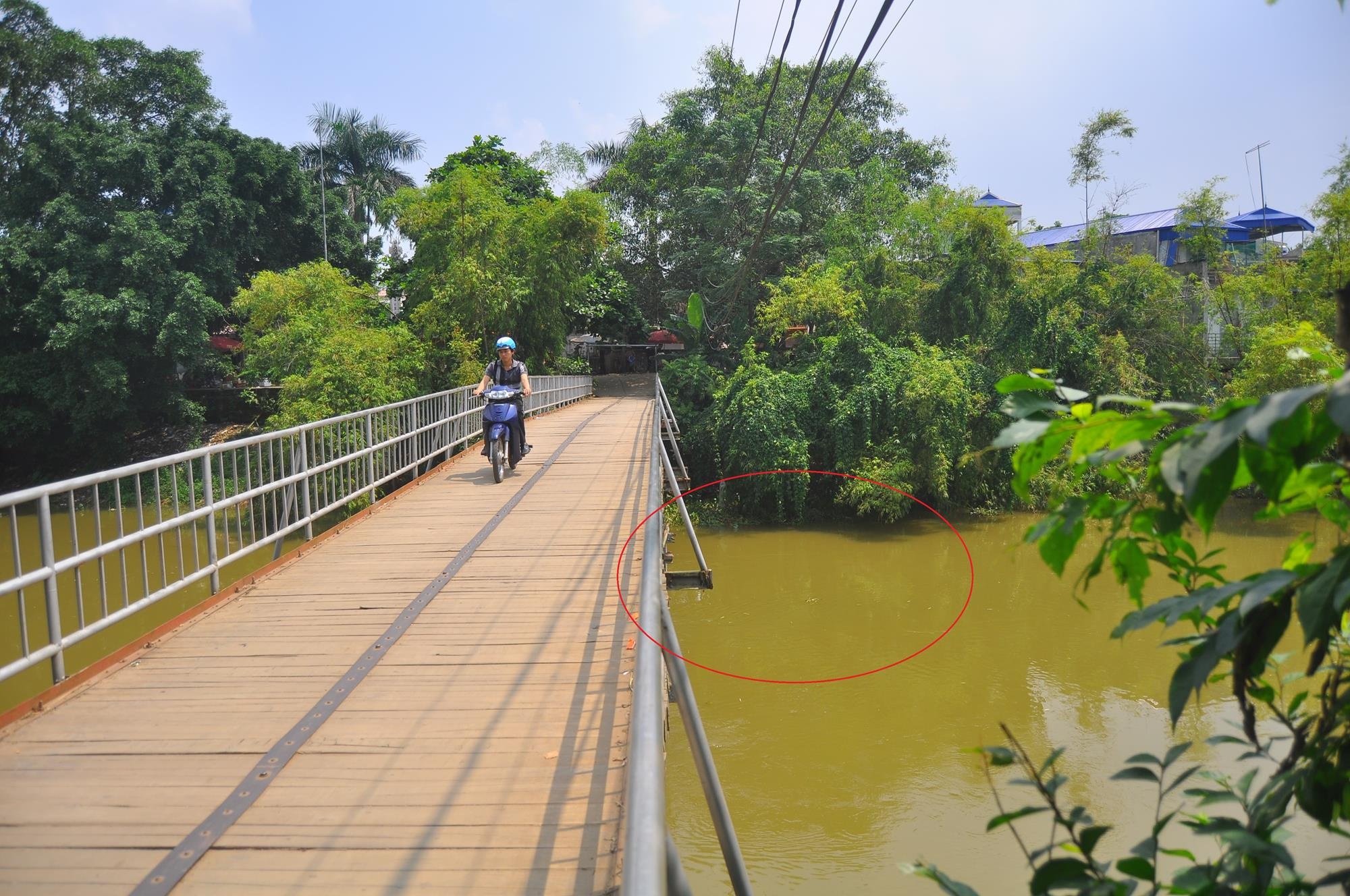 | Vị trí ông cụ Đỗ Văn Hòe (87 tuổi) nhảy cầu tự tử tại cây cầu sắt Kim Quan (Thạch Thất, Hà Nội). Ảnh: Hoàn Nguyễn. |