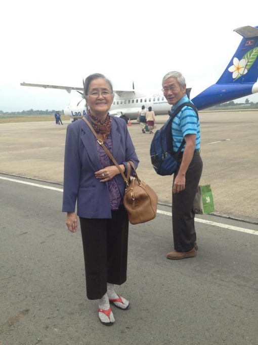 | Vợ chồng ông Lê Huề trước chuyến đi. |