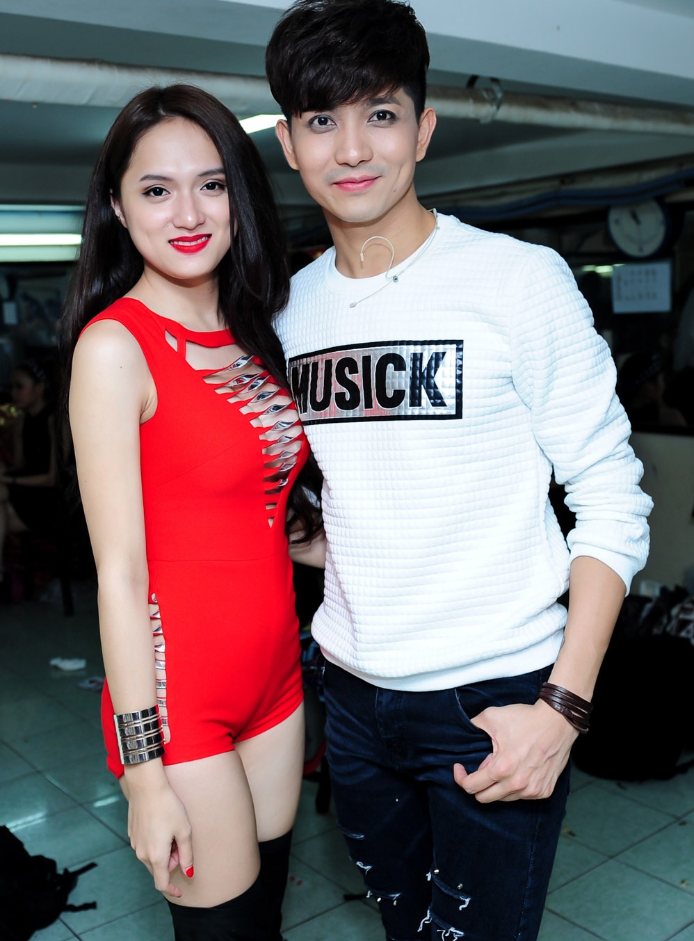 | Hương Giang Idol cũng tham gia biểu diễn trong liveshow của Tim. Cô diện váy hở táo bạo và kết hợp với ông bố một con trong một tiết mục sôi động. |