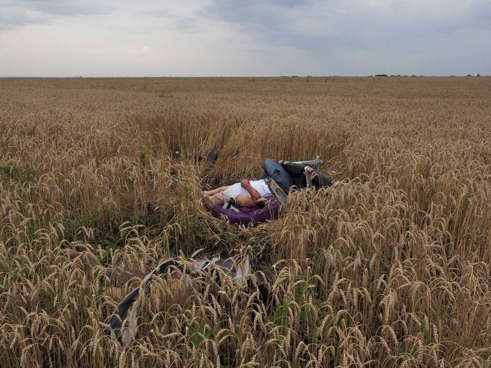 Thi thể một nạn nhân trong thảm kịch MH17 ở Donetsk, miền đông Ukraine. Chiếc Boeing 777 của Malaysia Airlines bị bắn rơi ở miền đông Ukraine trong ngày 17/7 cùng 298 hành khách và thành viên phi hành đoàn khi thực hiện lộ trình từ Amsterdam, Hà Lan tới Kuala Lumpur, Malaysia. Mảnh vỡ máy bay cùng thi thể các nạn nhân rơi xuống một khu vực hẻo lánh ở Donetsk, nơi quân đội Ukraine giao tranh với lực lượng vũ trang phản đối Kiev. Chính quyền Ukraine và phương Tây đổ lỗi phe nổi dậy bắn rơi MH17 bằng tên lửa Buk nhưng Nga công bố bằng chứng cho thấy một máy bay chiến đấu bắn phi cơ chở khách của Malaysia. Hà Lan đang điều tra vụ việc vì 193 công dân nước này thiệt mạng trong sự cố. Ảnh: Time |