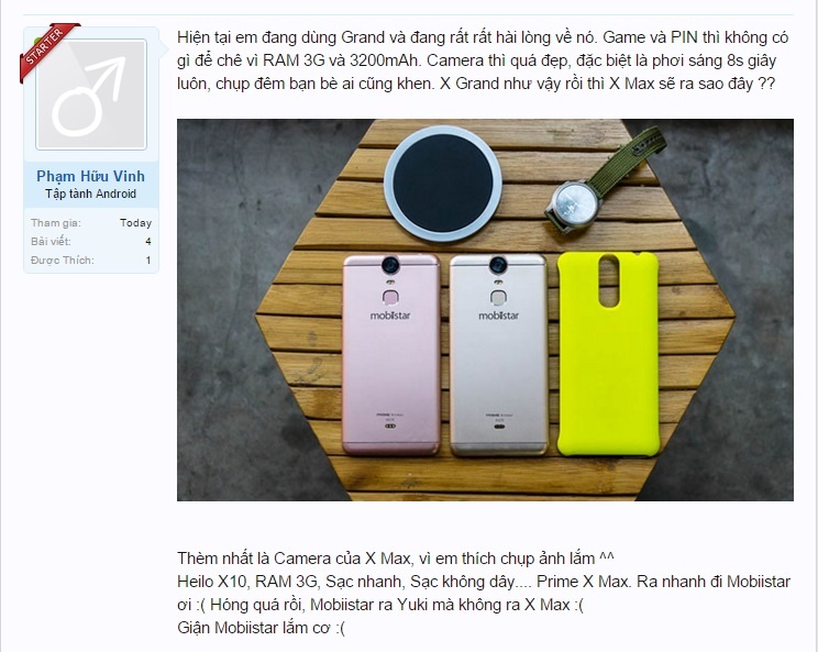 Trên trang forum của Mobiistar, một số người cũng ý kiến về việc ra chậm sản phẩm. |