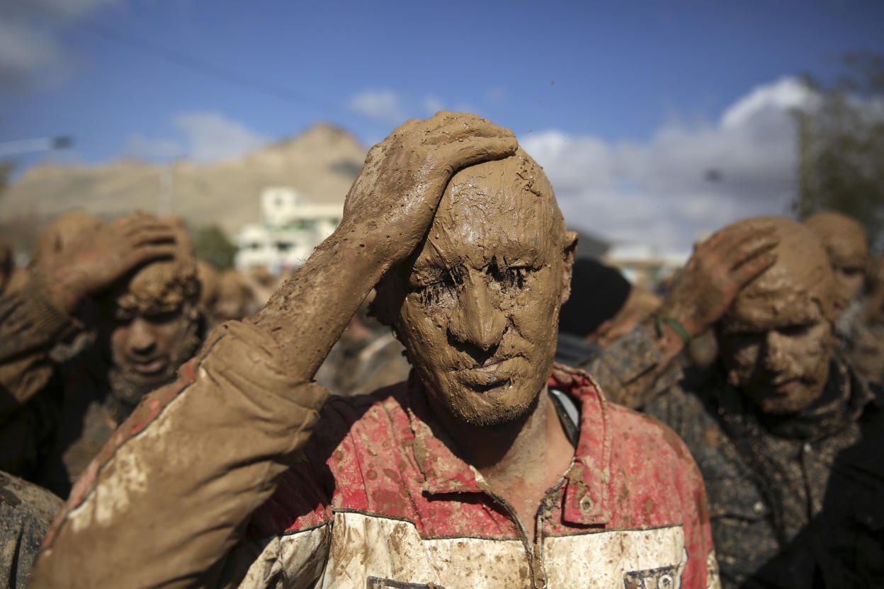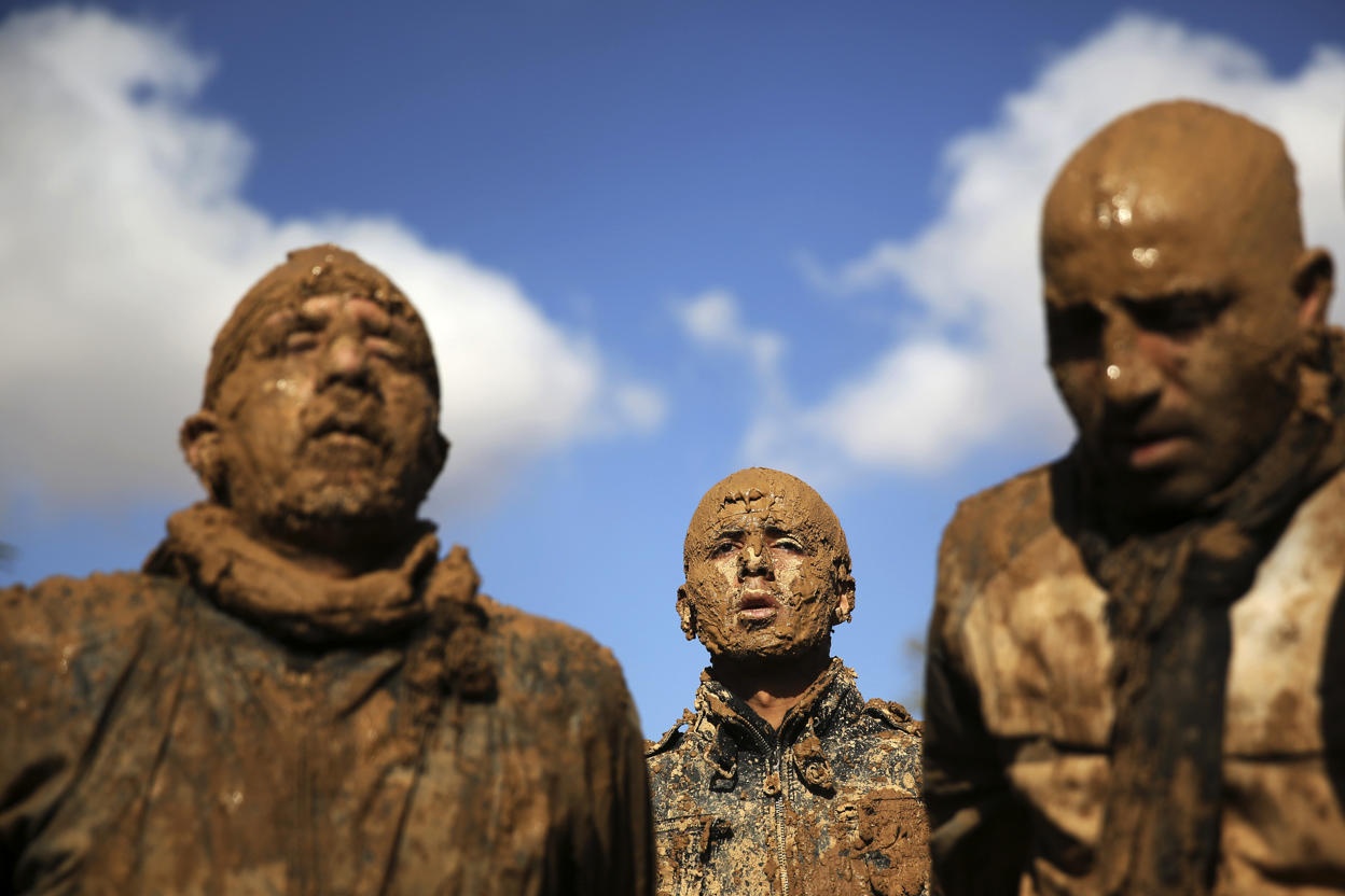 | Các tín đồ trát bùn lên người để tưởng nhớ ngày mất của Hussein, con trai của đấng tiên tri Mohammed. Ảnh: AP. |