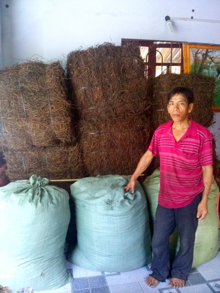 Anh Trần Văn Thuận, ở ấp Long Trường 3, xã Long Thạnh, huyện Phụng Hiệp, đã thu hoạch 2,5 tấn sương sáo khô cách nay hơn 1 tháng, đang chất đầy nhà vẫn chưa tìm được người bán,