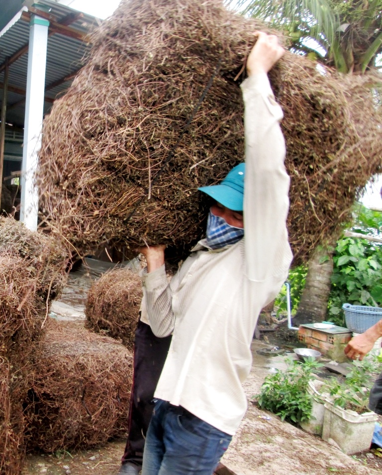Ông Tiến nói: “Nếu bán với giá rẻ tôi vẫn chấp nhận để trả tiền phân thuốc và đầu tư cho vụ sau, đằng này tìm thương lái khó hơn tìm vàng”.