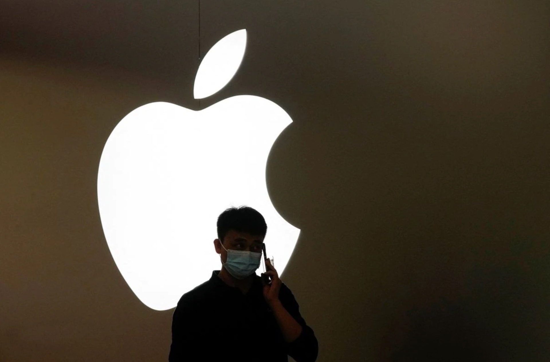 | Khách hàng đứng trước một Apple Store tại Thượng Hải (Trung Quốc). Ảnh: Reuters. |