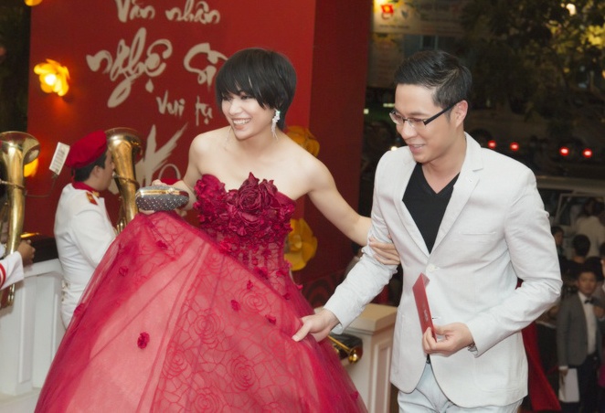 | Tina Tình được MC Anh Quân tháp tùng trên thảm đỏ. So với những lần xuất hiện gần đây, cô bất ngờ chuyển từ hình ảnh tomboy sang sexy, nữ tính. Tina Tình cho hay, gần đây cô ý thức được mặt xây dựng hình ảnh của người nghệ sĩ quan trọng như thế nào. |