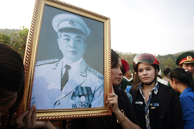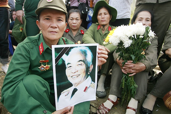 | Họ cầm di ảnh vị Tướng huyền thoại của dân tộc và thế giới. |