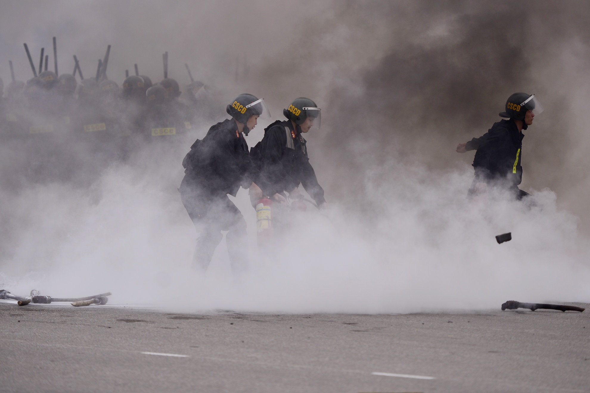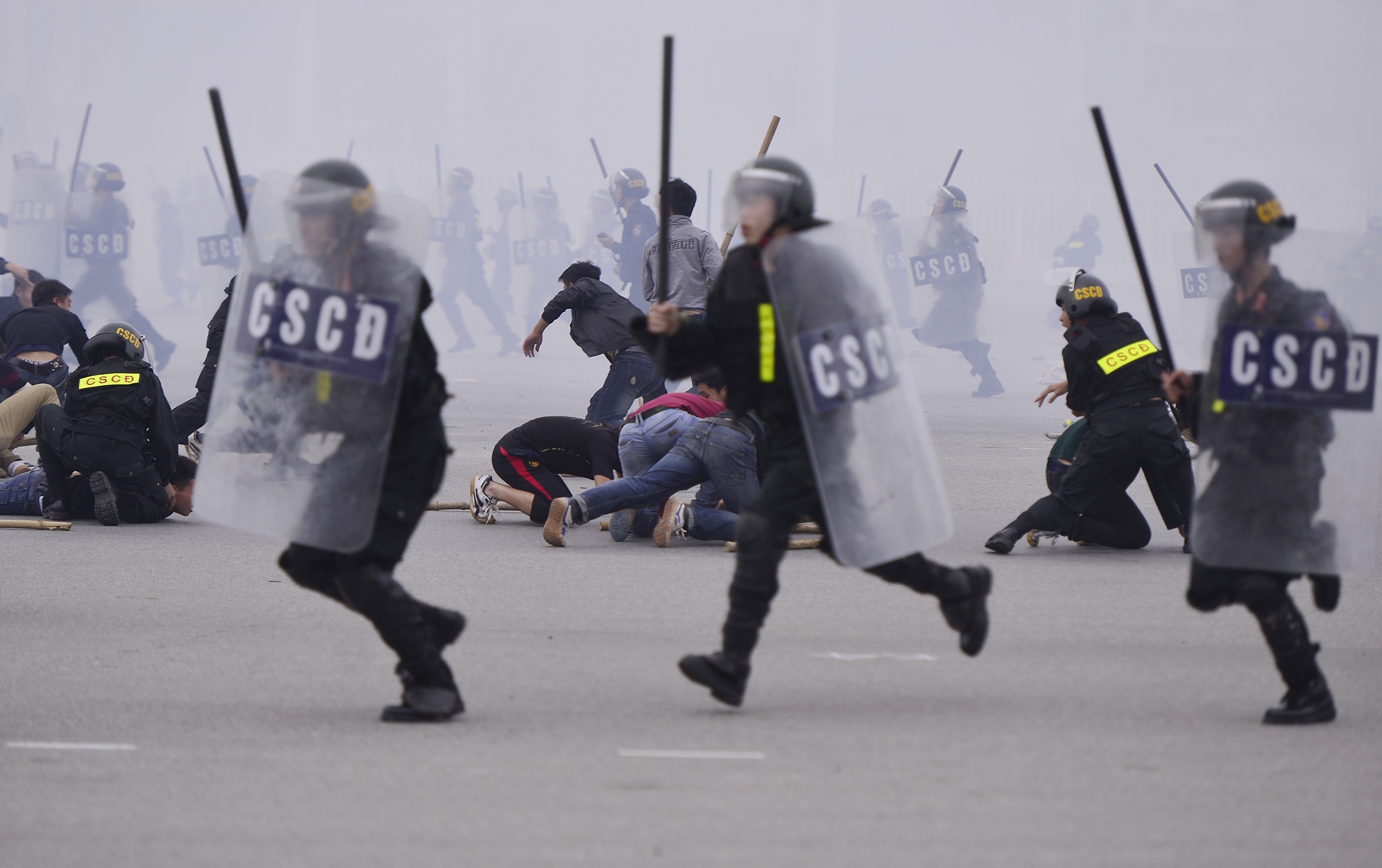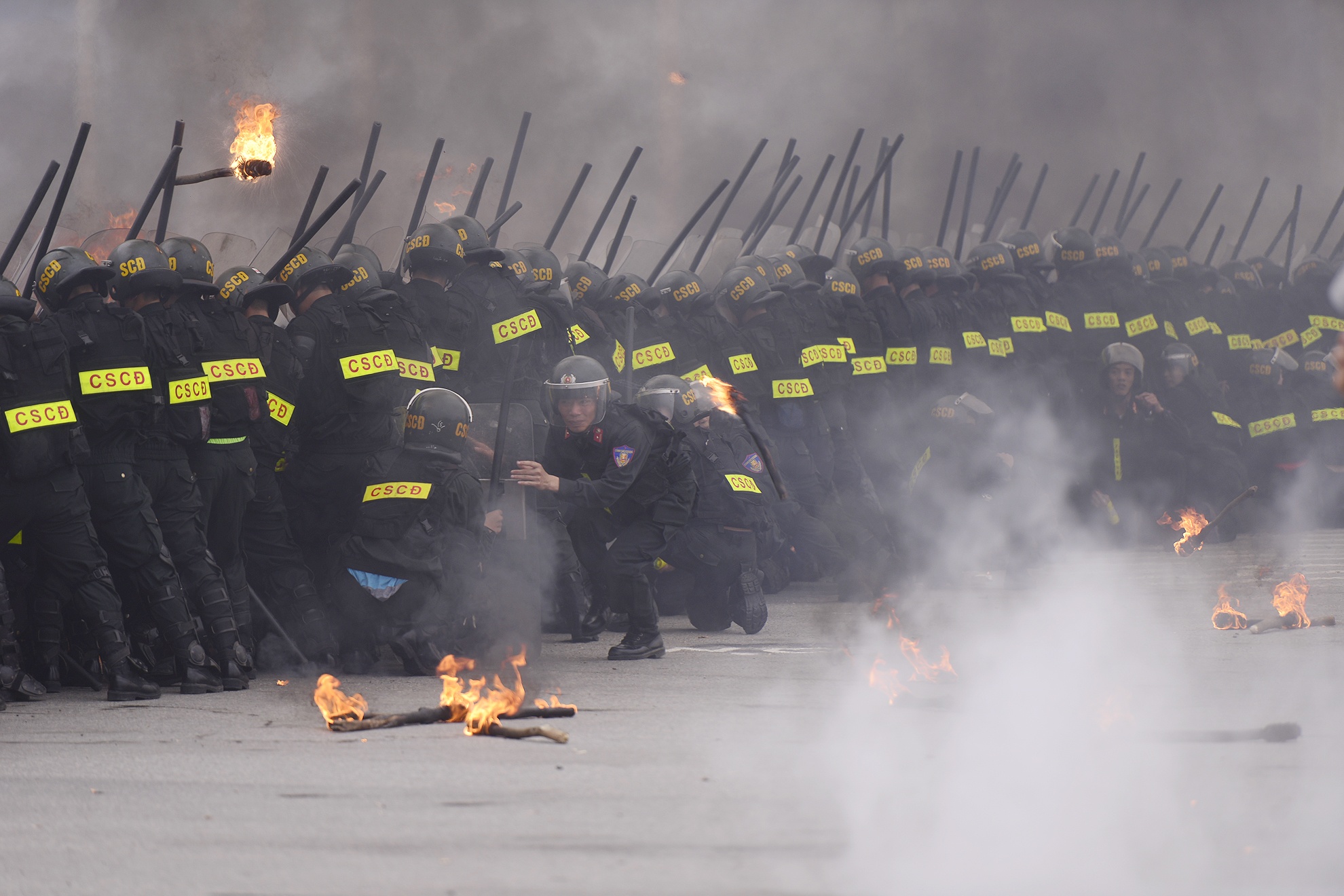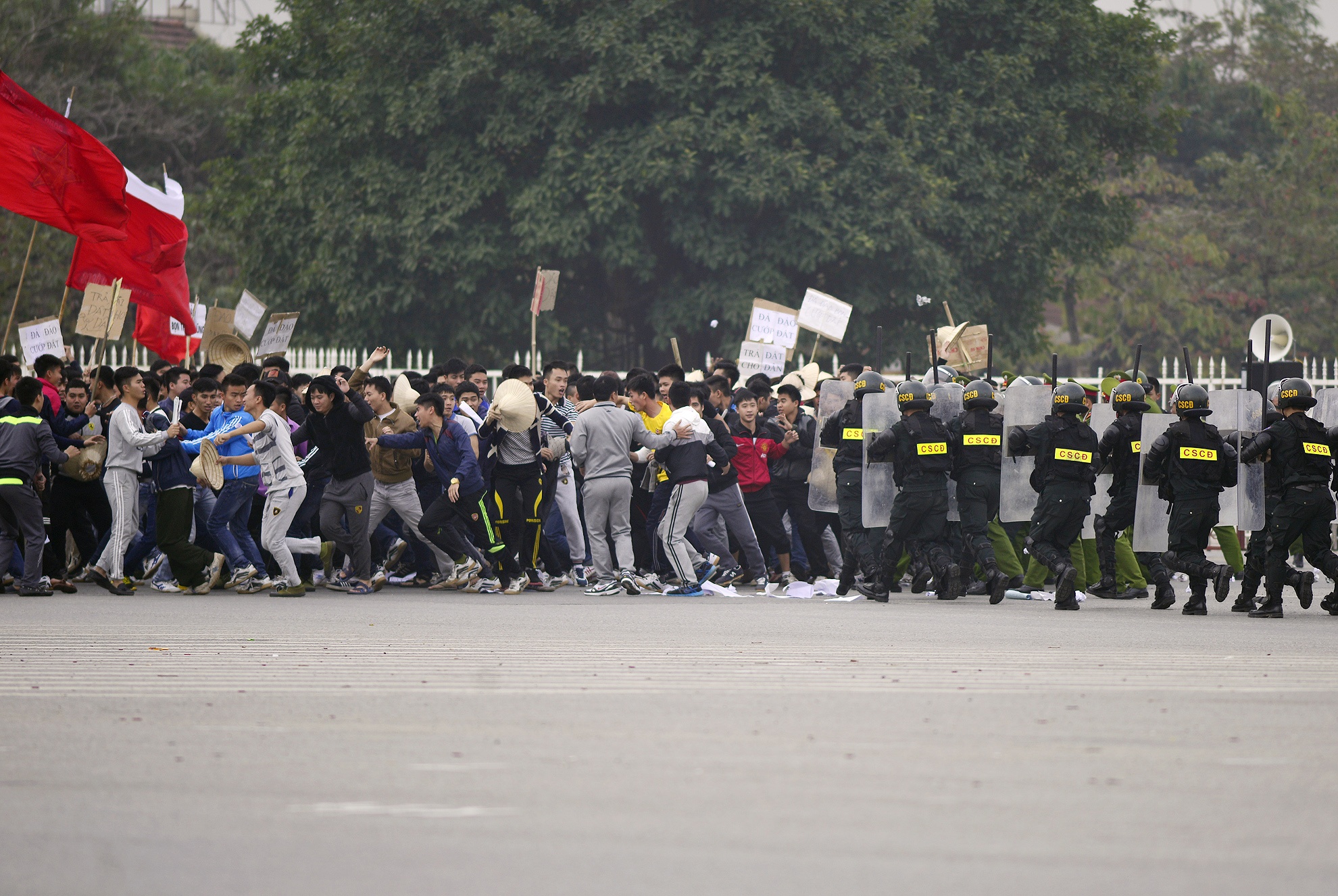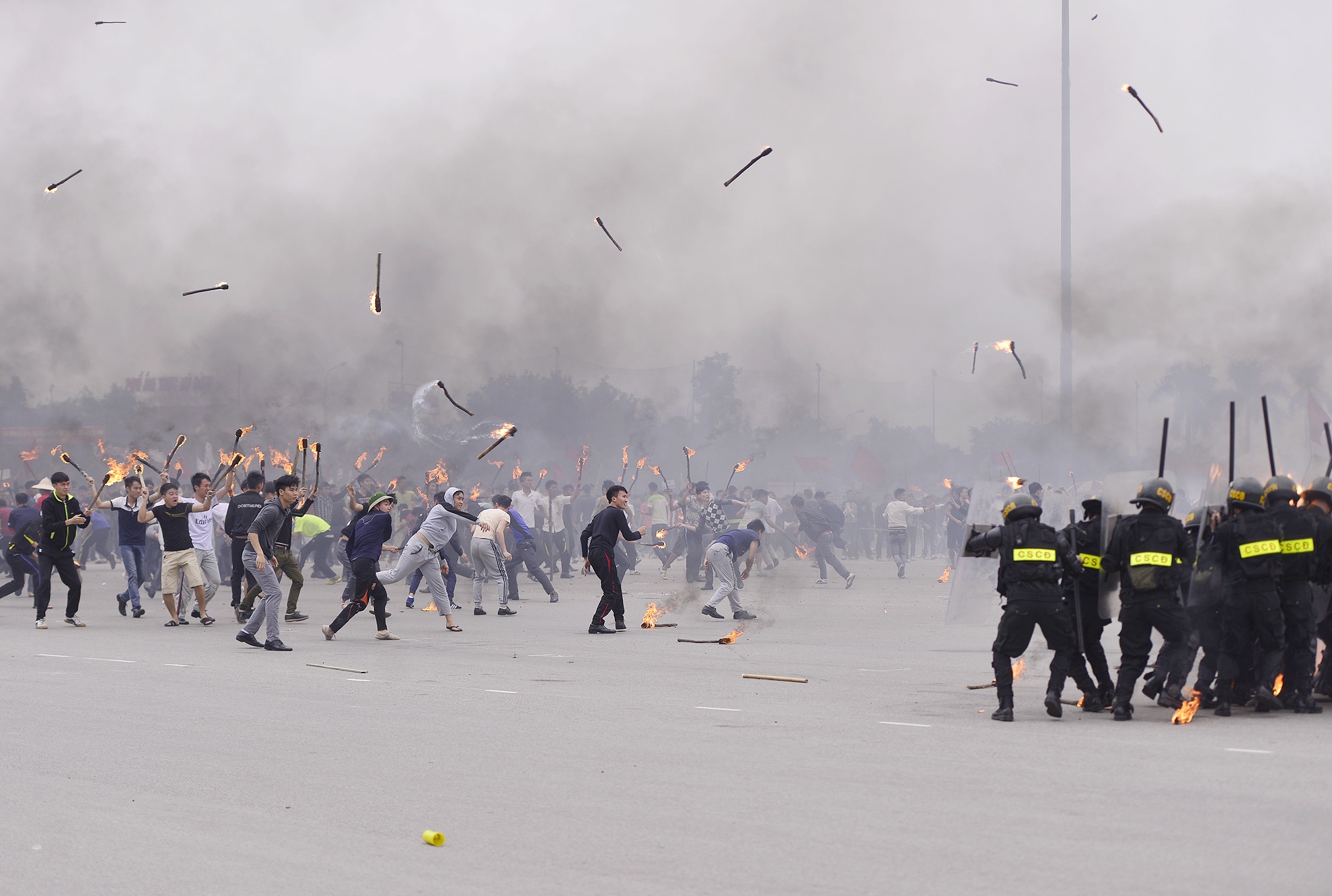 | ... cùng lúc hàng trăm chiến sĩ cảnh sát cơ động thuộc Bộ tư lệnh Cảnh sát cơ động được tăng cường đến hiện trường xử lý vụ việc. |