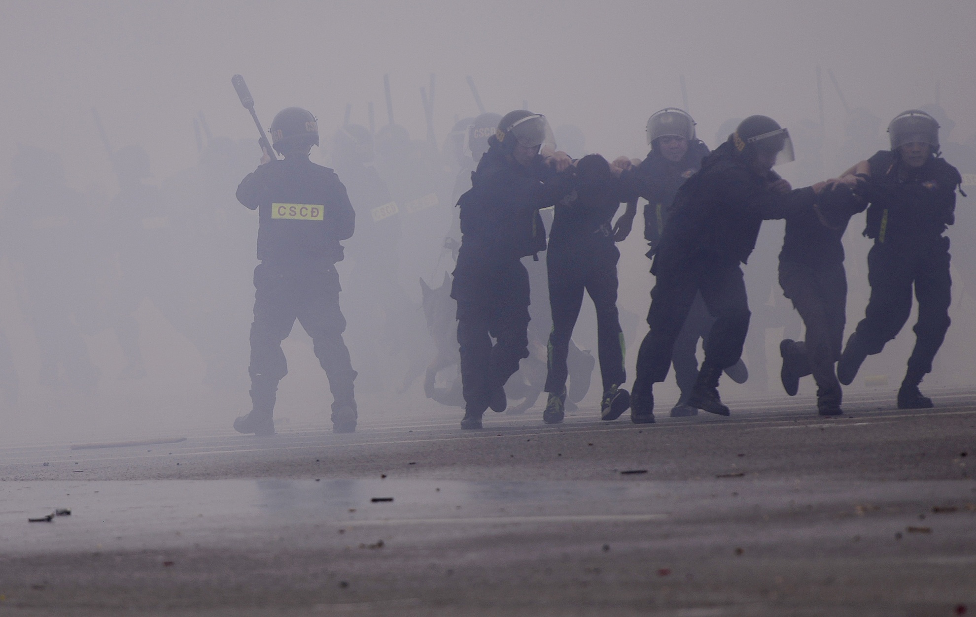 | Sau khi phun nước, đám đông bắt đầu giải tán. Cảnh sát đặc nhiệm đã bắt một số tên đầu sỏ, kích động. |
