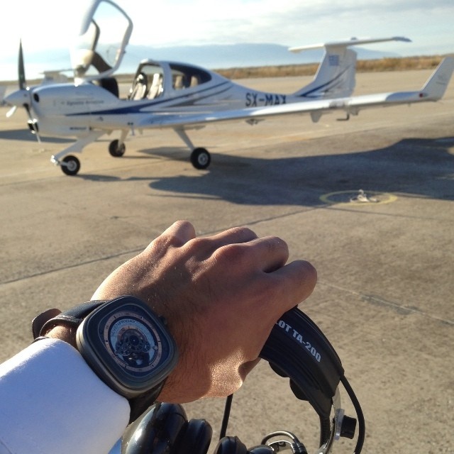 | Một tín đồ SevenFriday UAE khác dành thời gian cuối tuần để bay lượn trong chiếc máy bay thể thao riêng, và không quên mang theo món "đồ chơi nhỏ" SevenFriday P2-1. |