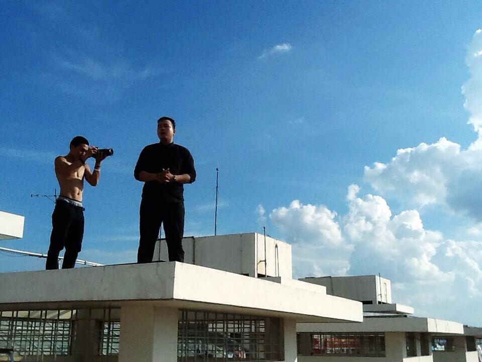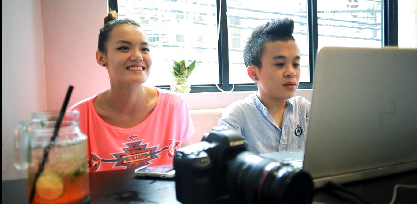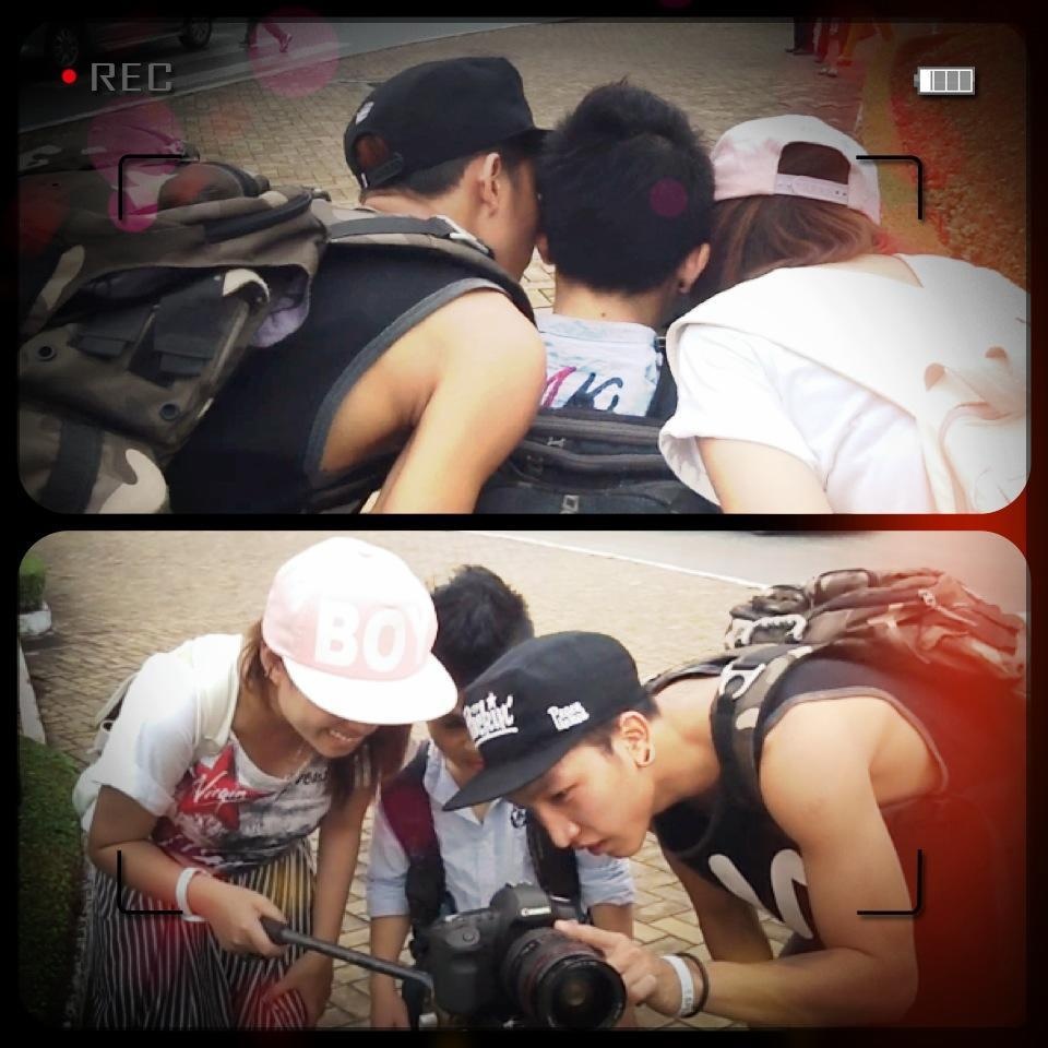 Ảnh hậu trường nhí nhố của hai nhân vật chính và và người dựng MV.