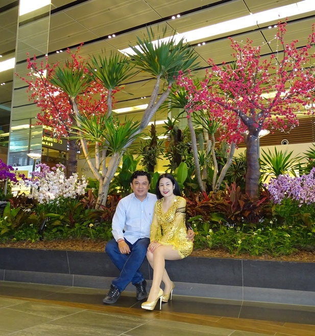 | Vợ chồng Lan Hương trong chuyến du lịch Singapore vừa qua. |