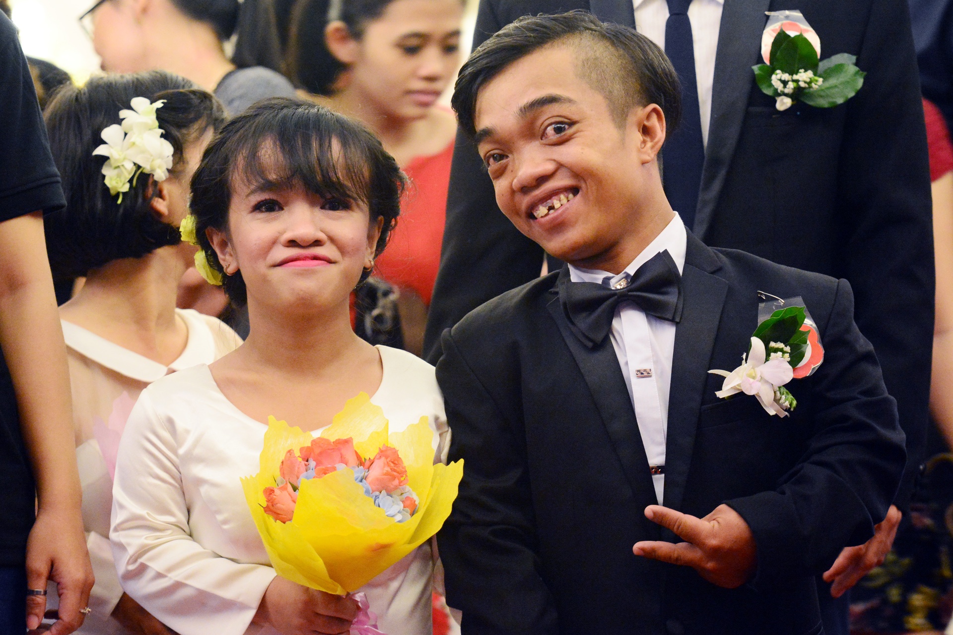 Anh Nguyễn Văn Lượng (26 tuổi, quê Đồng Tháp) và chị Nguyễn Thị Thu Đào (24 tuổi, quê Bình Định) gặp khiếm khuyết về cơ thể bẩm sinh khi cả hai đều chỉ cao 1,1 m. |