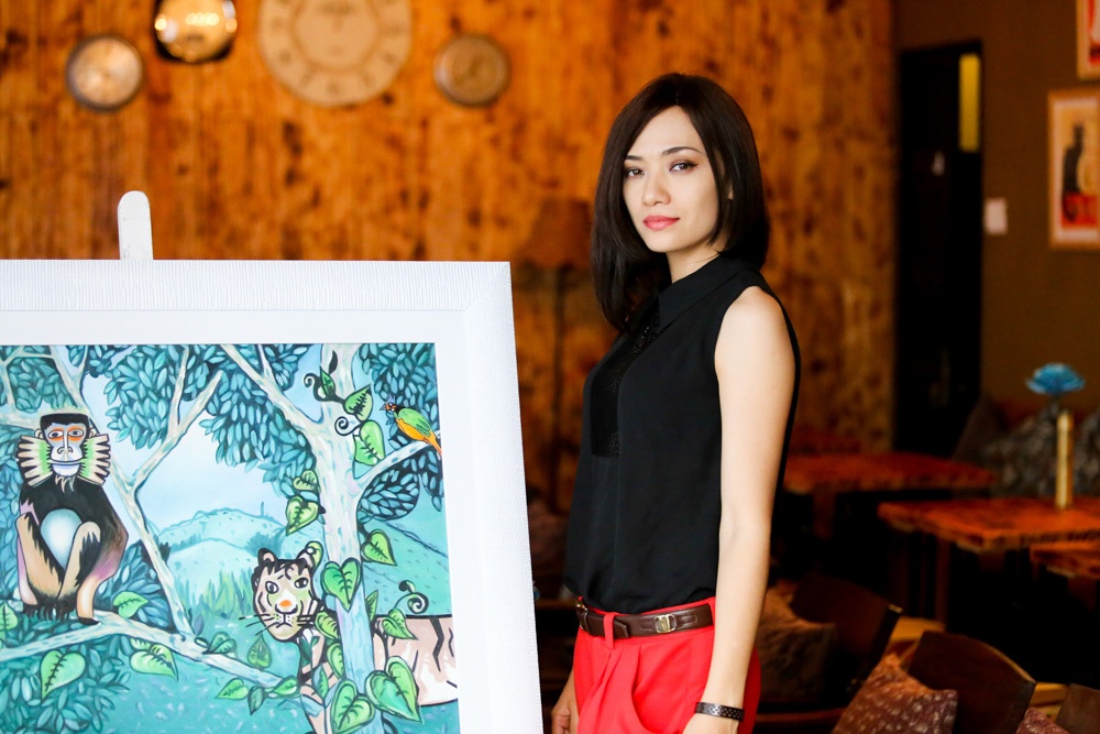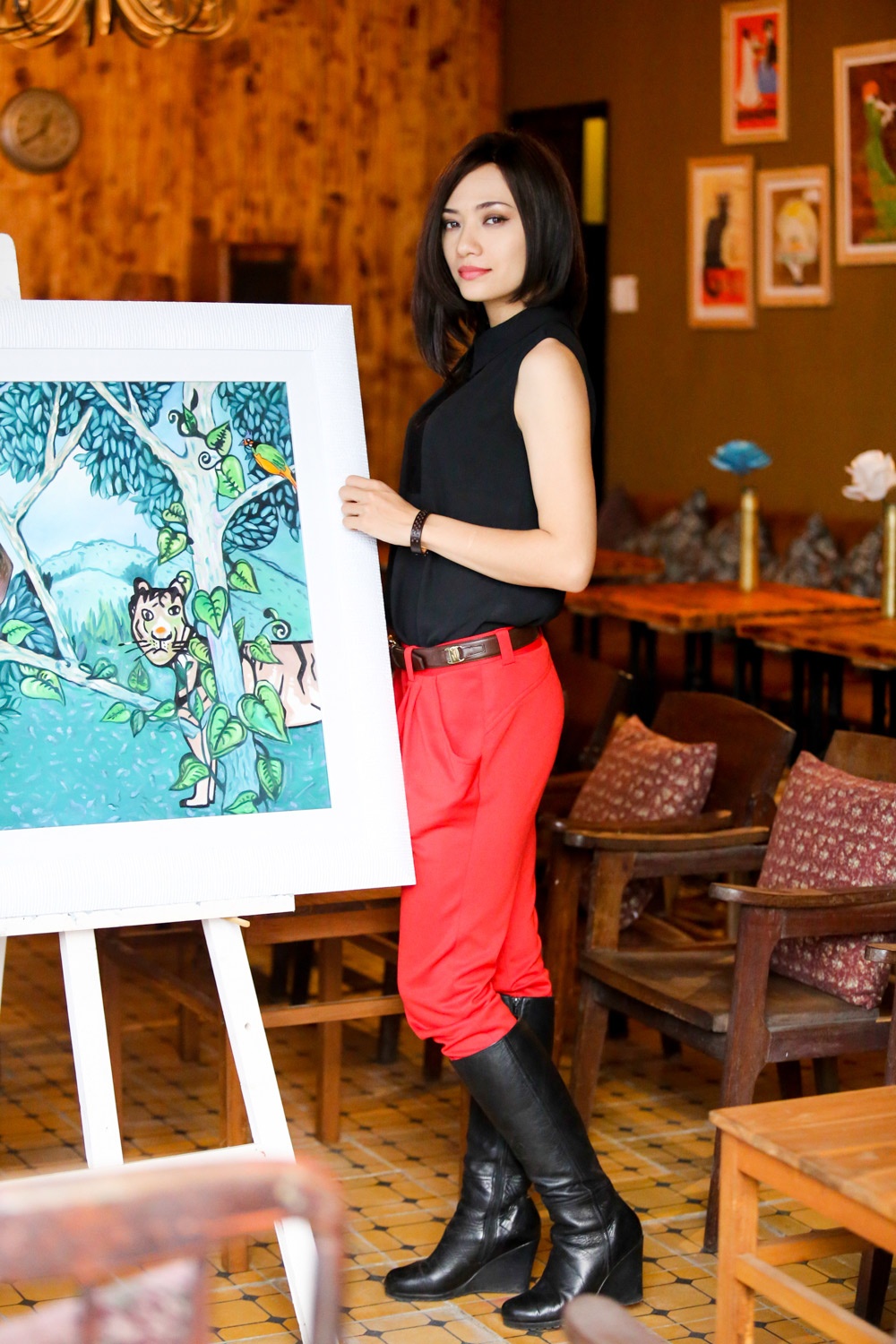 Người đẹp cho biết, nhờ vùi đầu trong hội họa, cô đã tìm được niềm đam mê cuộc sống và trở về ngày xưa. Do đó, cô đặt tên những bức ảnh của mình là Một thoáng ngây ngô.