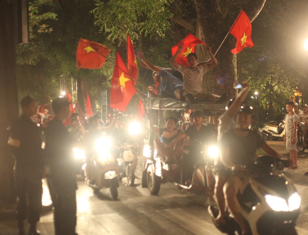 Sau chiến thắng 4-1 của tuyển U19 Việt Nam trên sân vận động Quốc gia Mỹ Đình, lúc 22h, một số tổ 141 của công an Hà Nội đã nhận được lệnh tung quân đến khu vực hồ Hoàn Kiếm và một số tuyến phố lân cận.