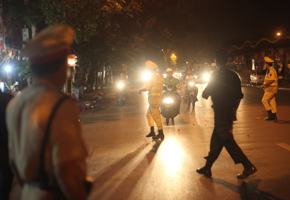 Về khuya, lượng người đi lại trên các tuyến phố trung tâm đông hơn ngày thường, khiến lực lượng làm nhiệm vụ cũng vất vả hơn.