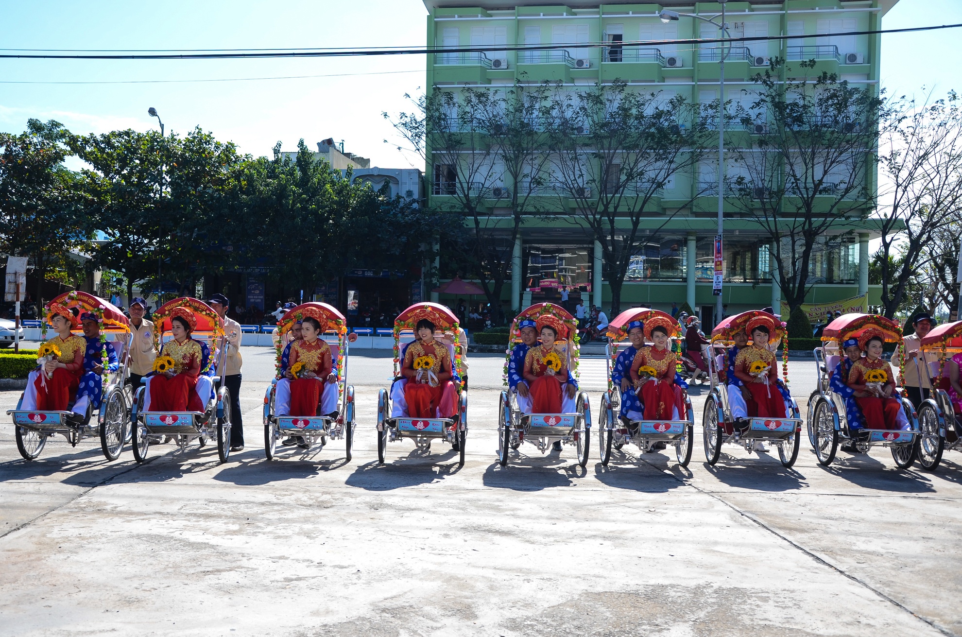 Sáng 27/12, lễ đưa dâu bằng xe xích lô xuất phát từ trụ sở Liên đoàn Lao động TP Đà Nẵng (đường Pasteur, quận Hải Châu) chuyển qua đường 2 tháng 9.