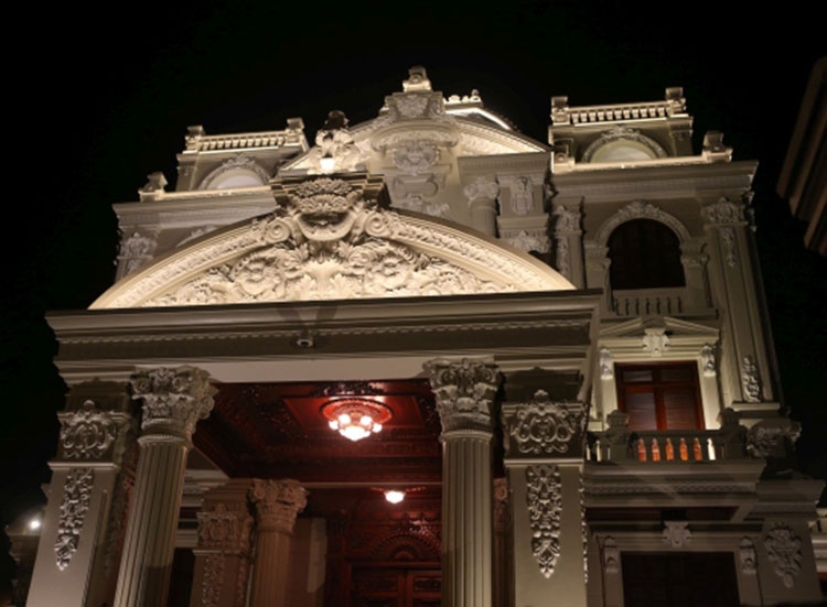 | Hệ thống đèn hắt sáng mang lại vẻ đẹp cổ kính cho công trình. |
