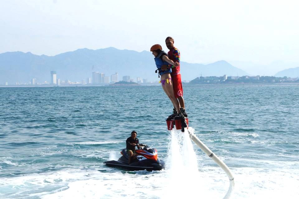 | Người nước ngoài tới Việt Nam kinh doanh trò chơi mạo hiểm Flyboard tại biển Nha Trang cũng nhập gia "tùy tục", áp dụng giá ưu đãi cho khách nội địa. Ảnh: NVCC. |