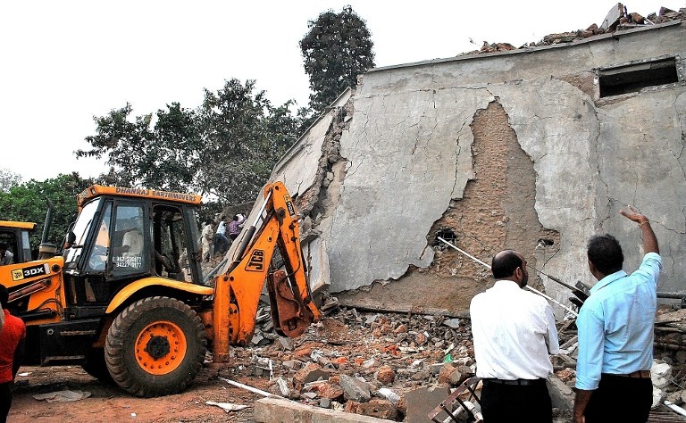 | Một tòa nhà mà công nhân đang xây dựng tại thành phố Canacona, bang Goa bất ngờ sụp đổ hôm 4/1. Ảnh: AP |