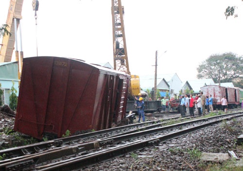 | Toa tàu vụ trượt văng ra khỏi đường ray. |