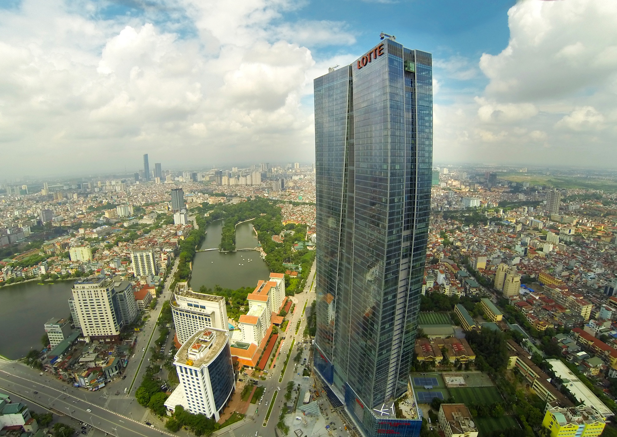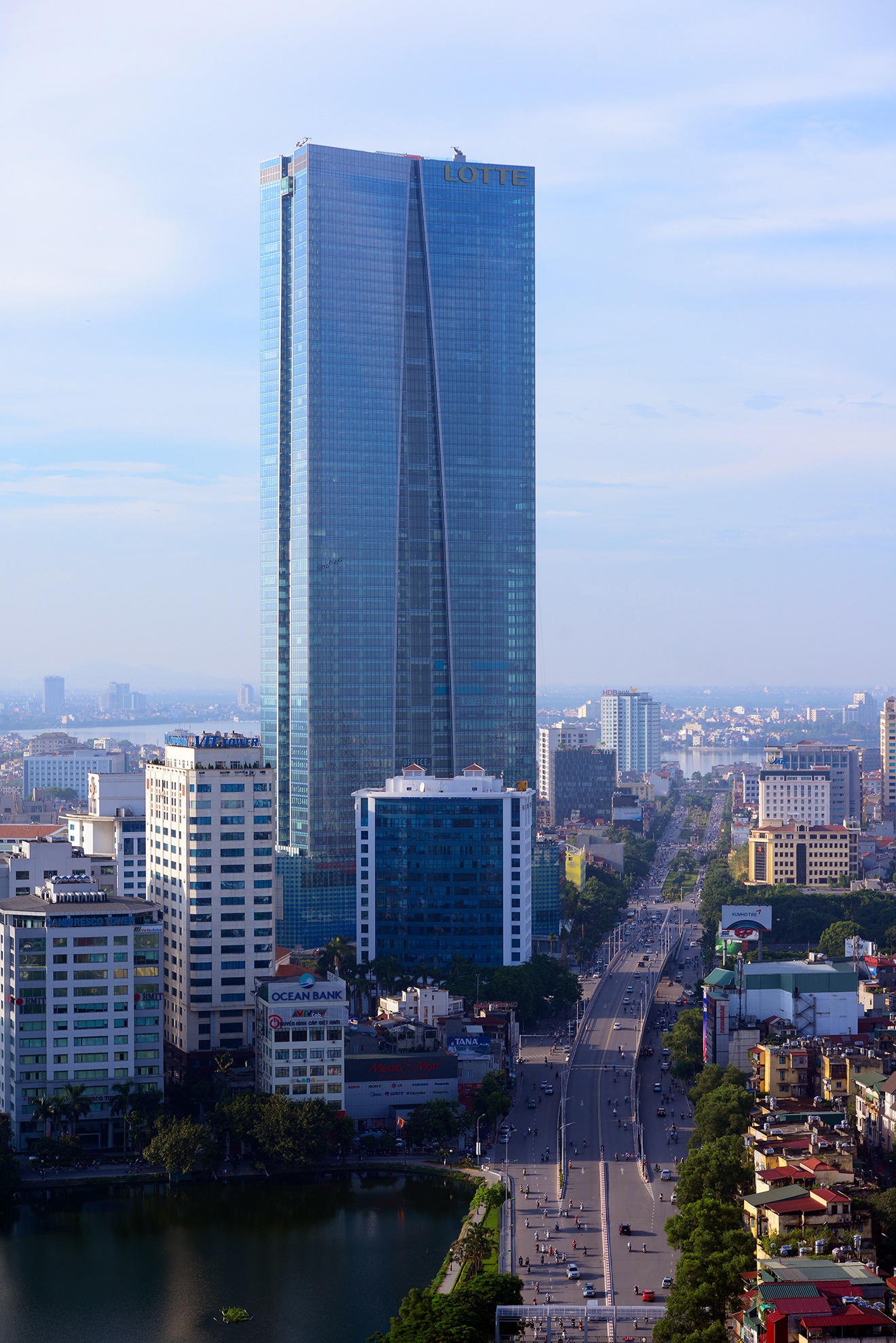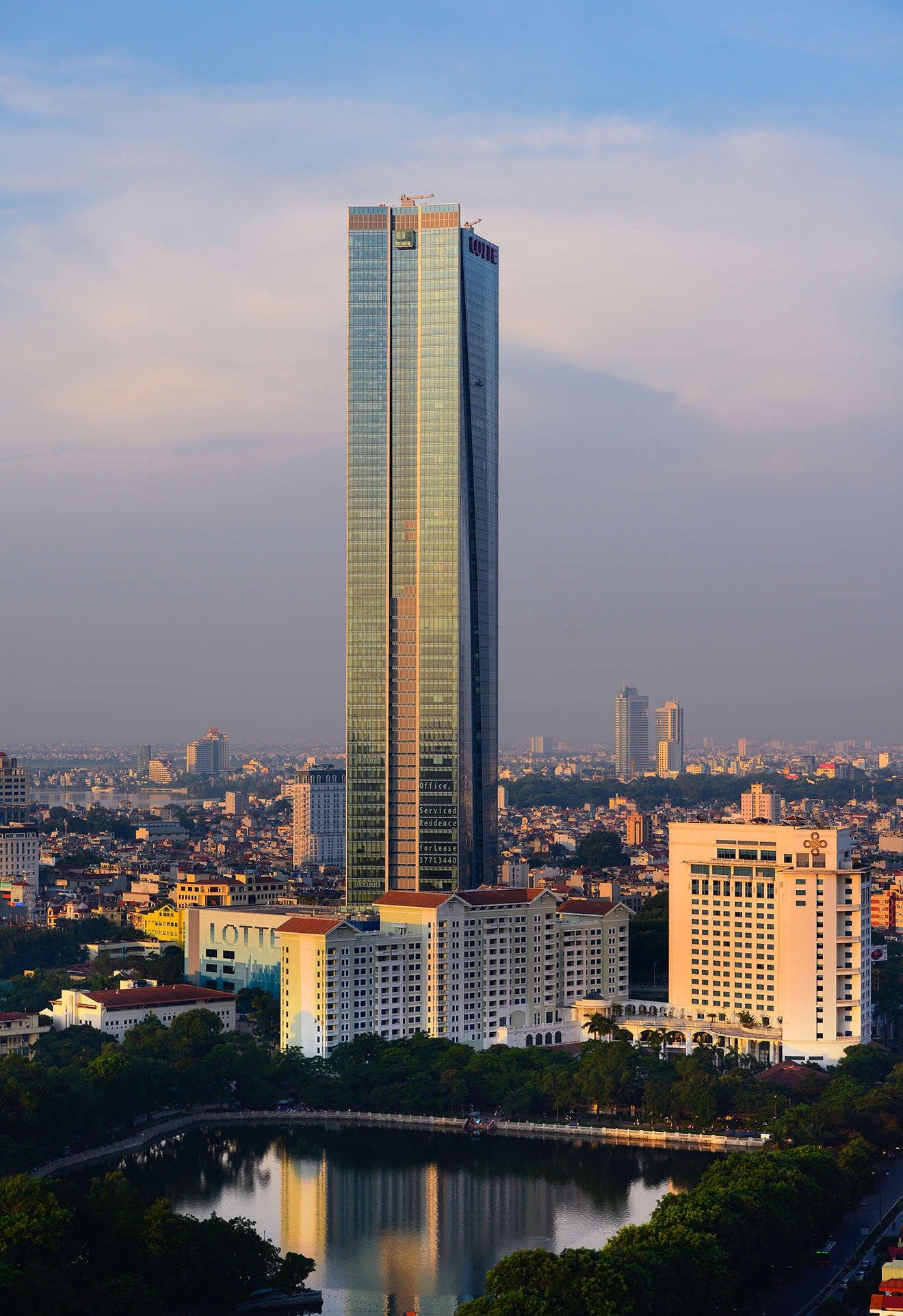 Cao ốc Lotte Center Hà Nội (267 mét), sừng sững ven trung tâm thủ đô đang thi công ở giai đoạn cuối. Đây là tòa tháp cao thứ hai Việt Nam, chỉ sau Keangnam Landmark Tower.