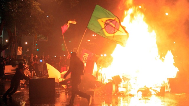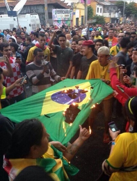 Ngay sau trận thua sốc 1-7 trước "cỗ xe tăng" Đức, cổ động viên Brazil điên cuồng tràn xuống phố, biểu tình, đốt phá khiến thành phố Sao Paulo tê liệt vì bạo loạn.