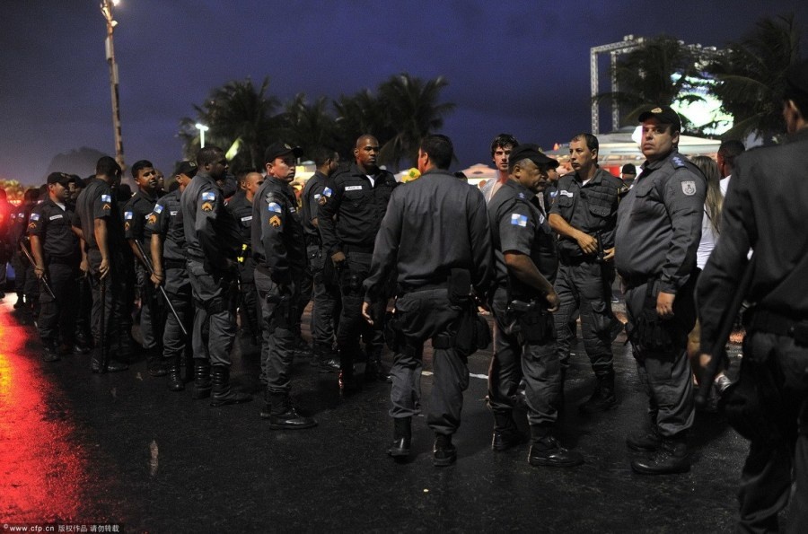 Khung cảnh hỗn loạn trên bãi biển Copacabana (Rio de Janeiro). Ngay sau khi hiệp 1 khép lại với kết quả thua khó gỡ 0-5, các cổ động viên đang theo dõi trận bóng trực tiếp qua màn ảnh lớn bị kích động, quay sang xô xát, cắn xé lẫn nhau dẫn tới bạo loạn nghiêm trọng. Ít nhất 7 người đã bị cảnh sát bắt giữ.