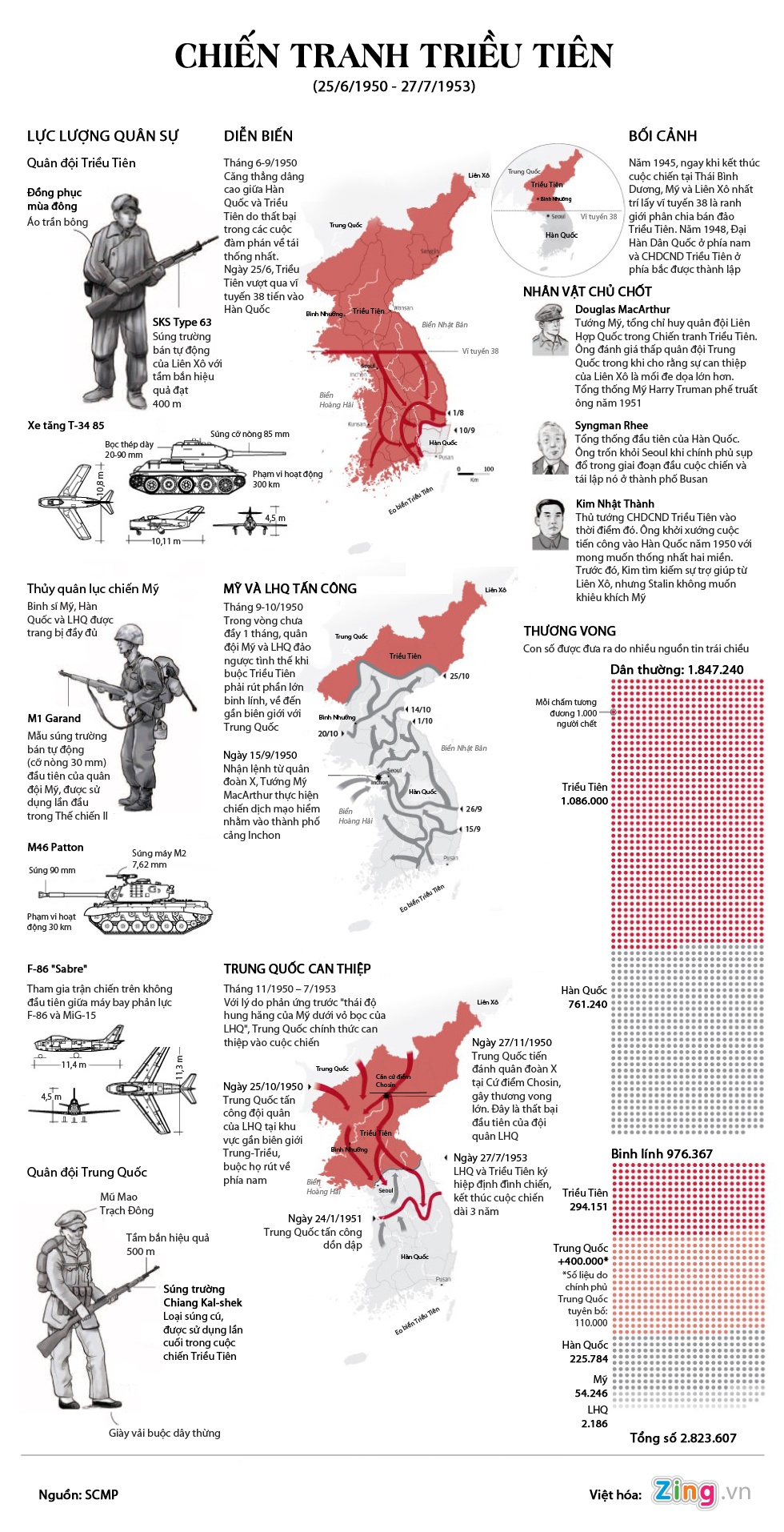 Chỉ diễn ra trong 3 năm, song cuộc xung đột trên bán đảo Triều Tiên từ tháng 6/1950 kéo theo hậu quả nặng nề khi hơn 2,8 triệu người thiệt mạng và tình trạng chia cắt cho tới nay.