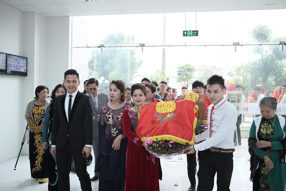 | Hot girl và chồng rạng ngời trong lễ ăn hỏi. Sau những sóng gió trong chuyện tình cảm, cô tìm được bến đỗ mới bên người đàn ông thành đạt. Gia đình chồng cũng rất yêu quý và ủng hộ cô. |